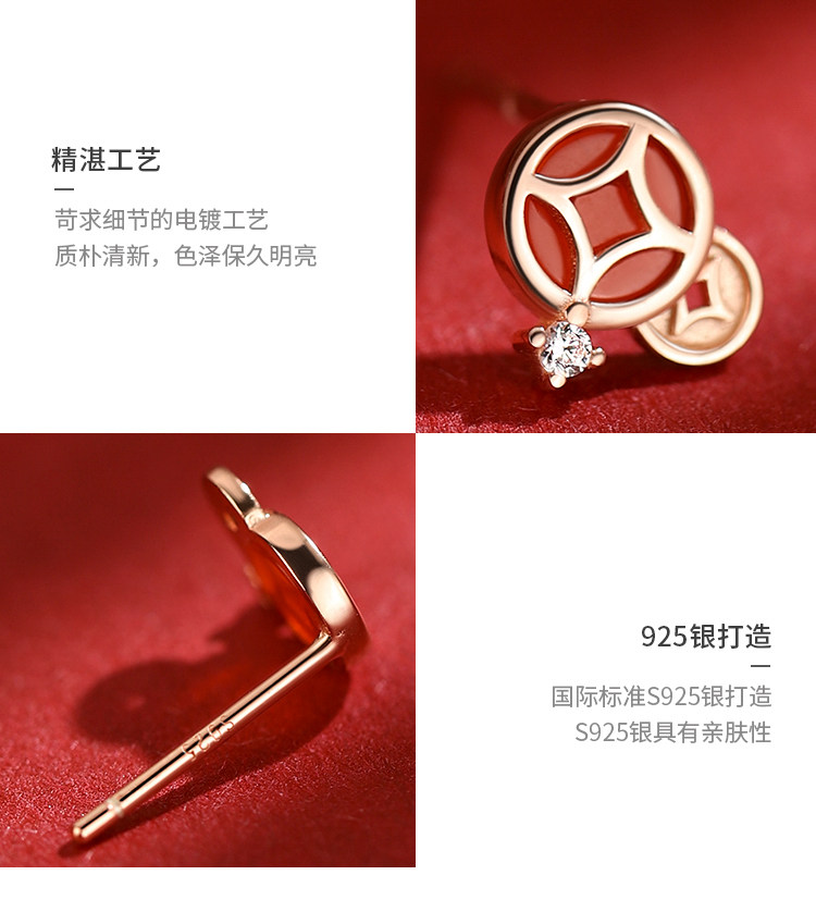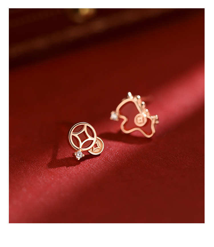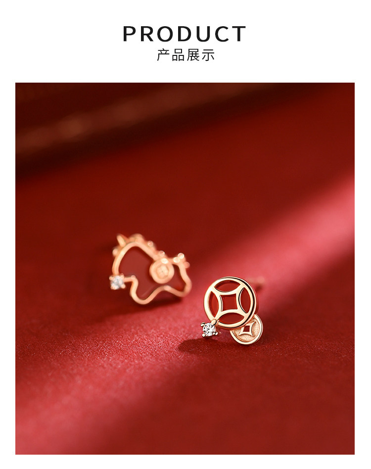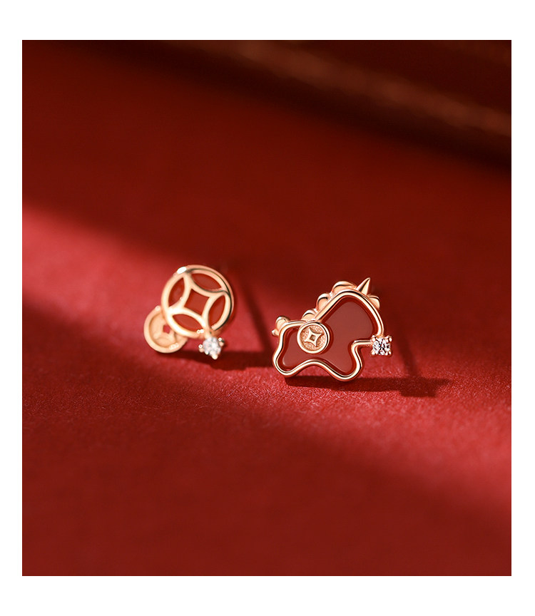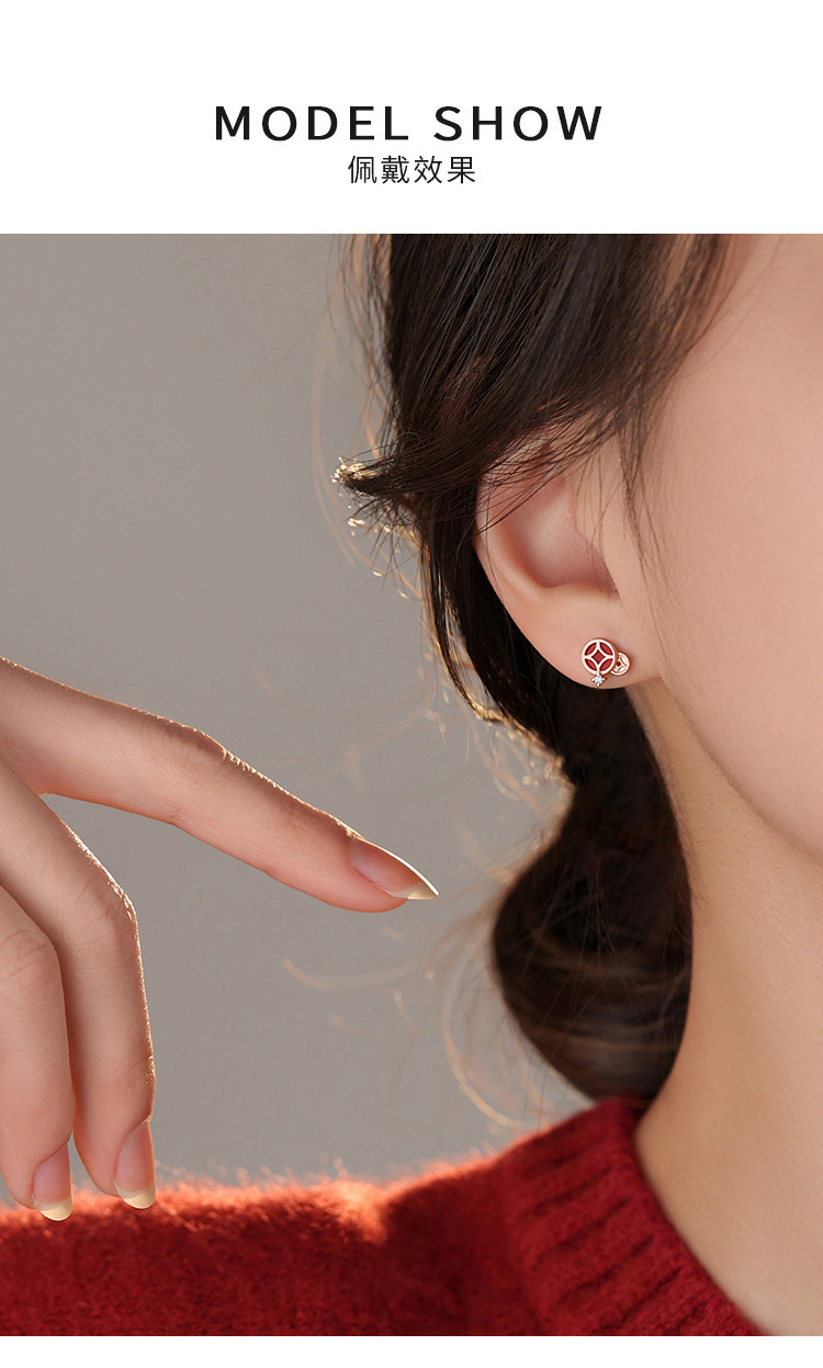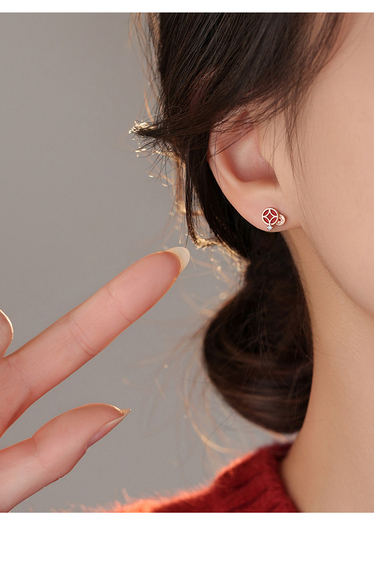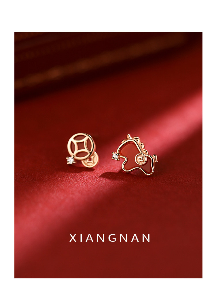 【Xiangnan】999 Silver Instant Wealth Earrings, Light Luxury Women's 2026 New Year Earrings, Red Earrings for the Year of Birth