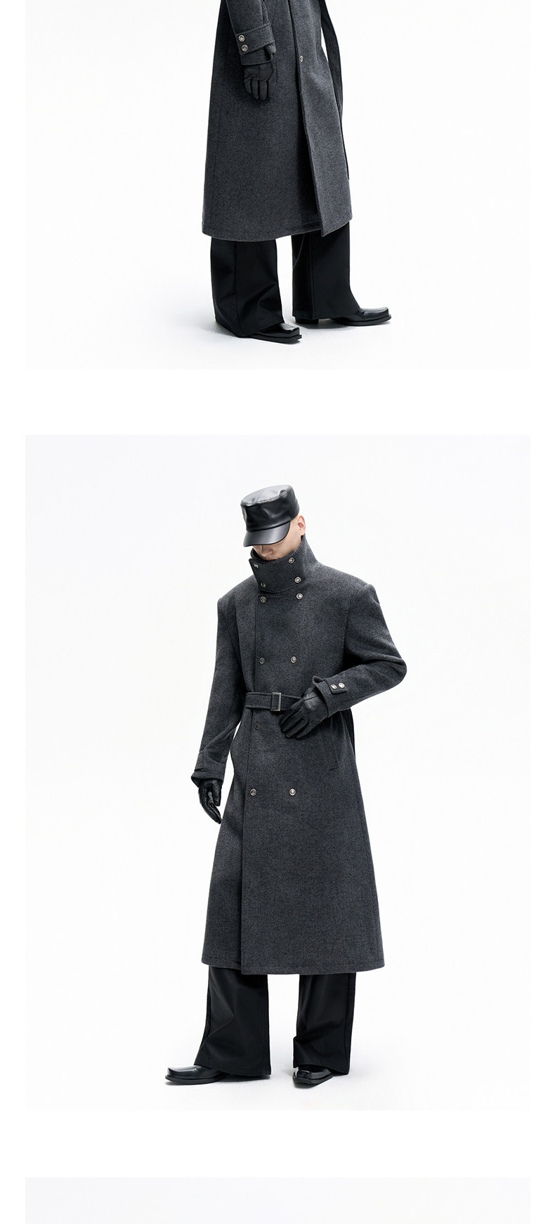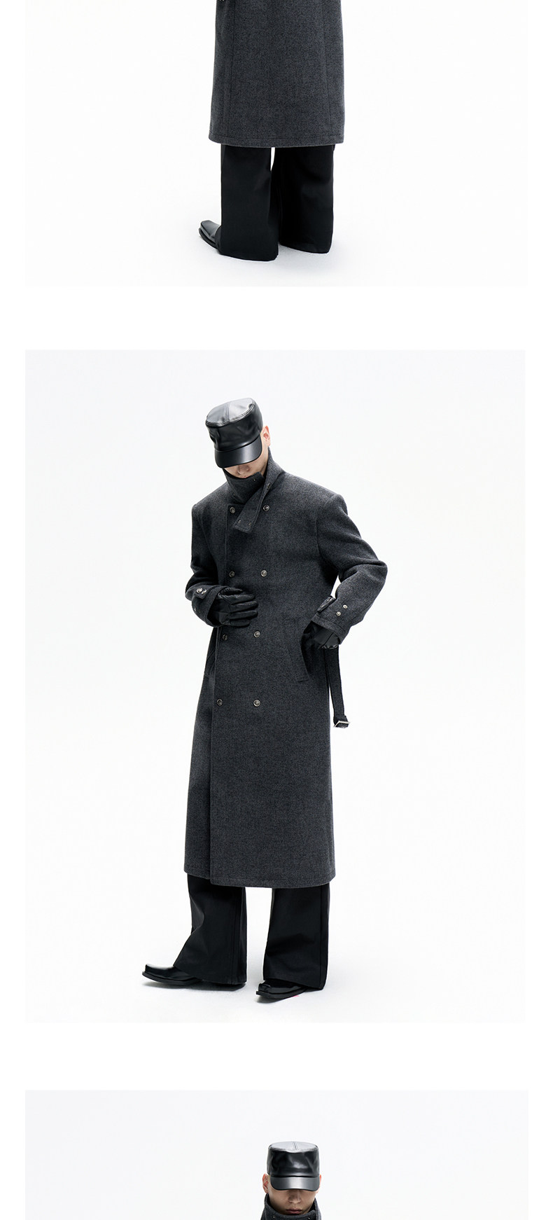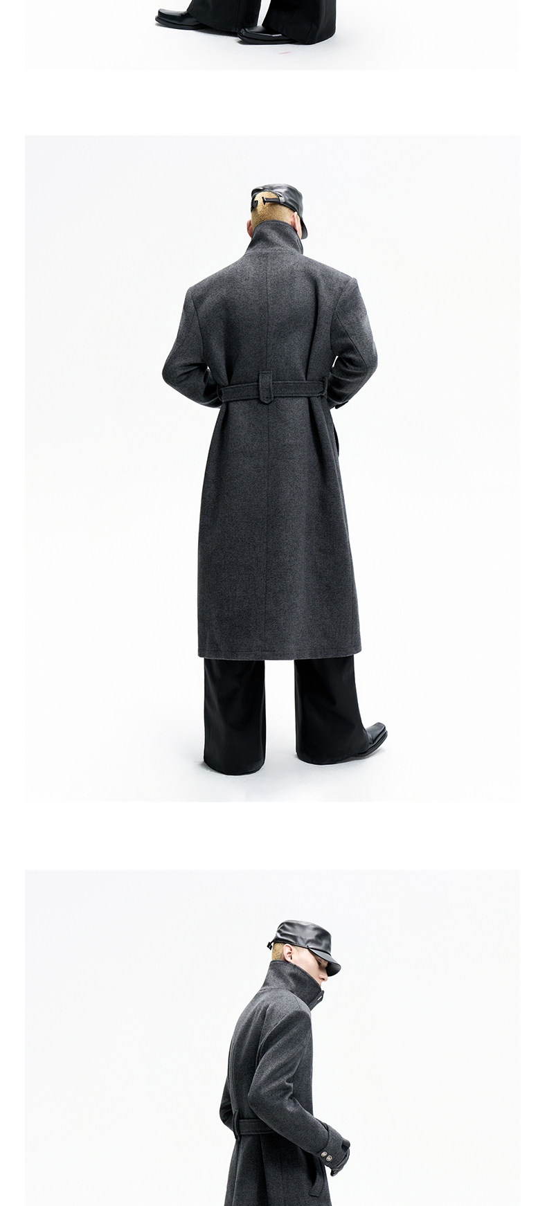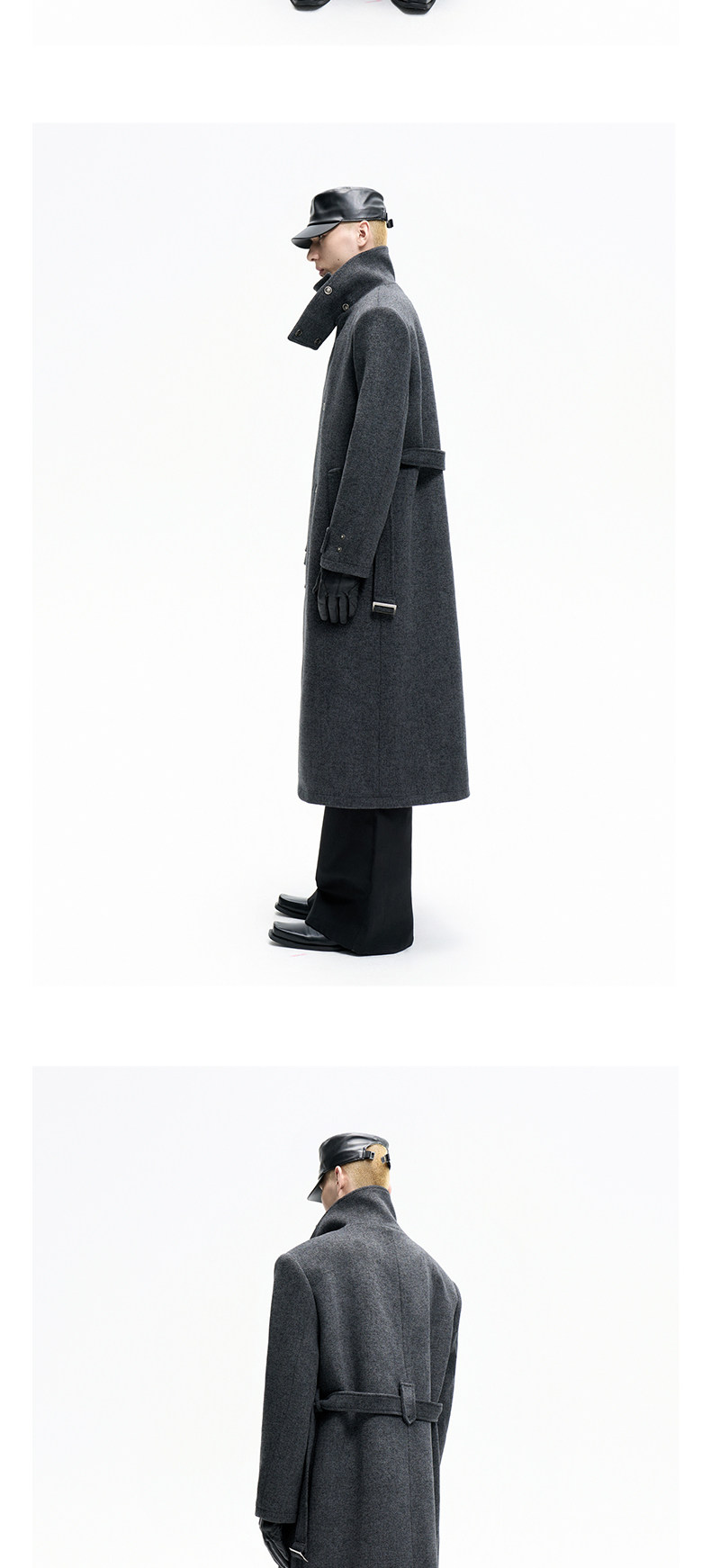 Frkm Scd 25Aw Belted Structured Coat, Lace-Up Wool Thickened Woolen Coat, Long Loose Silhouette