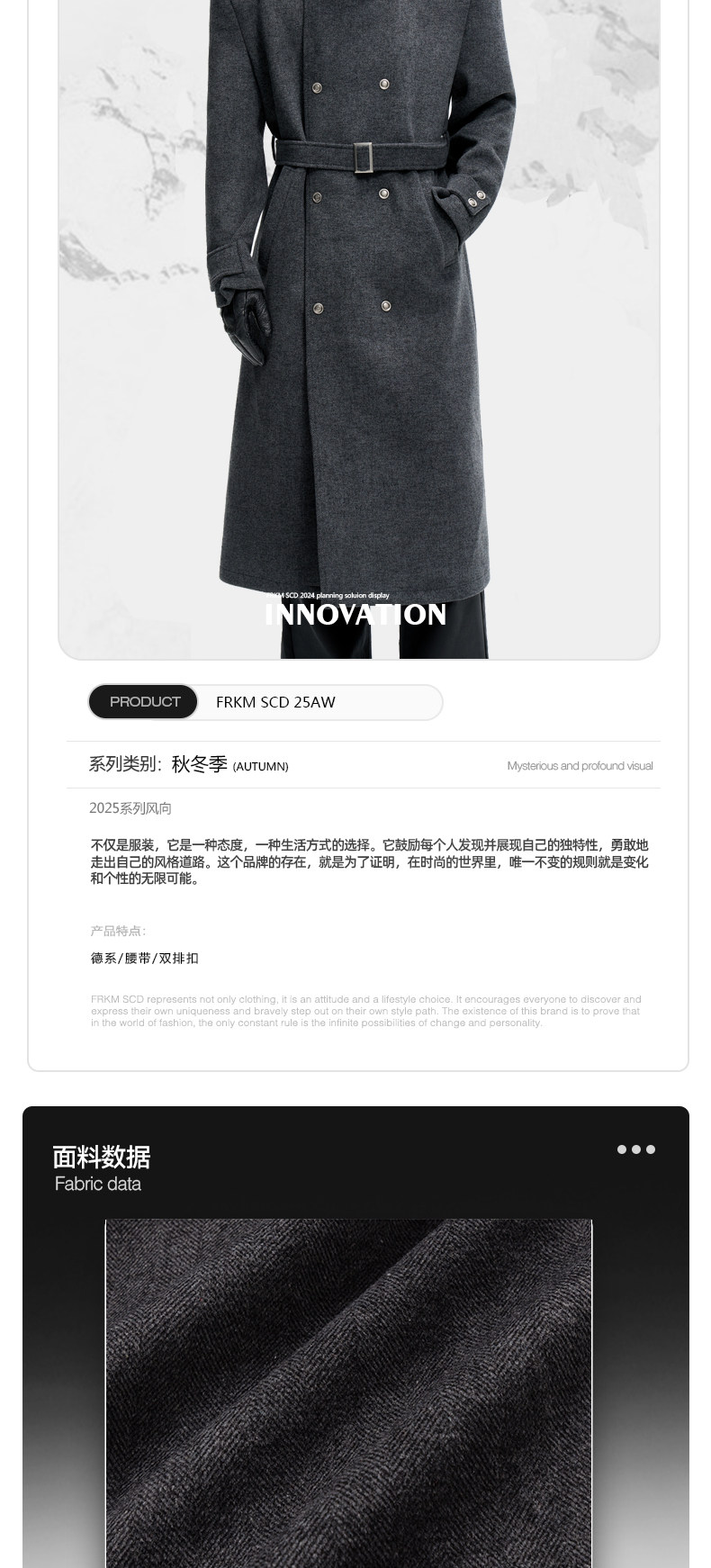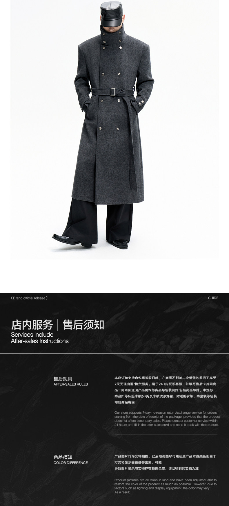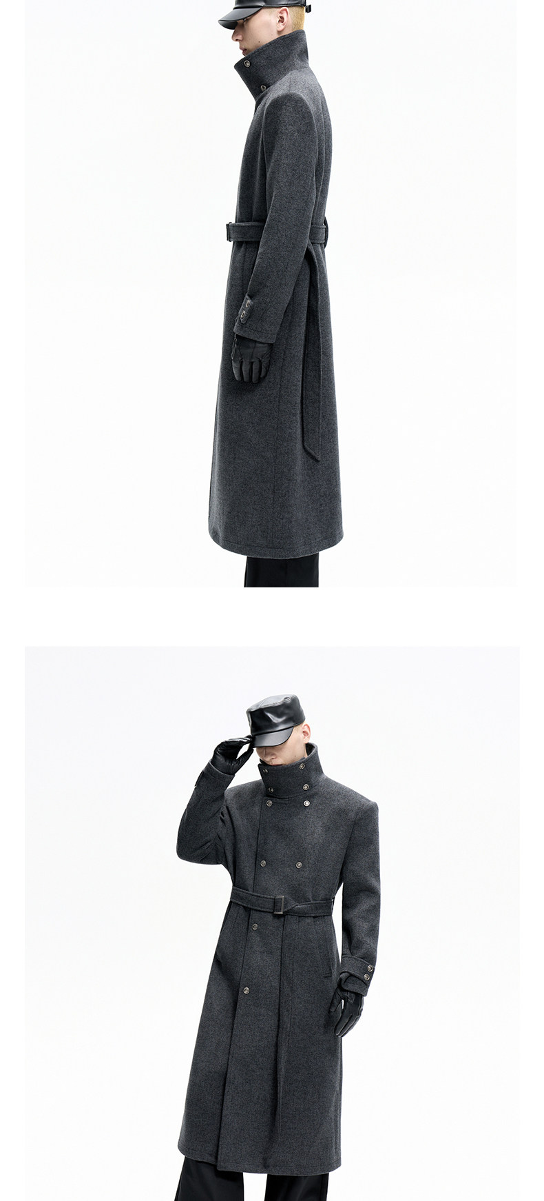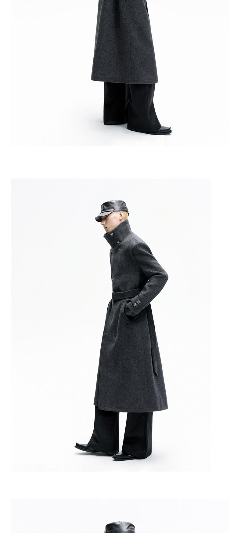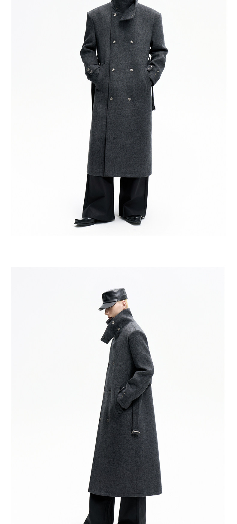 Frkm Scd 25Aw Belted Structured Coat, Lace-Up Wool Thickened Woolen Coat, Long Loose Silhouette