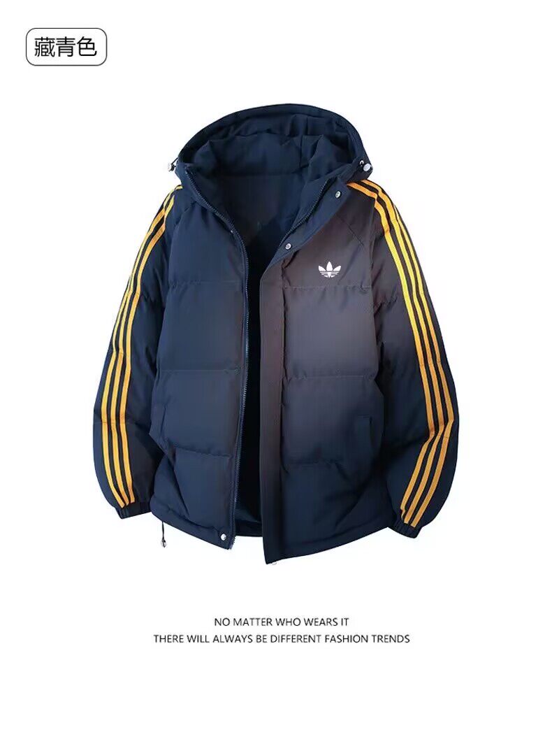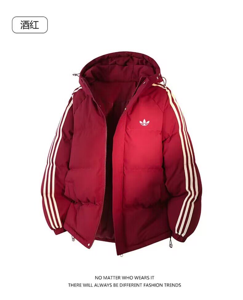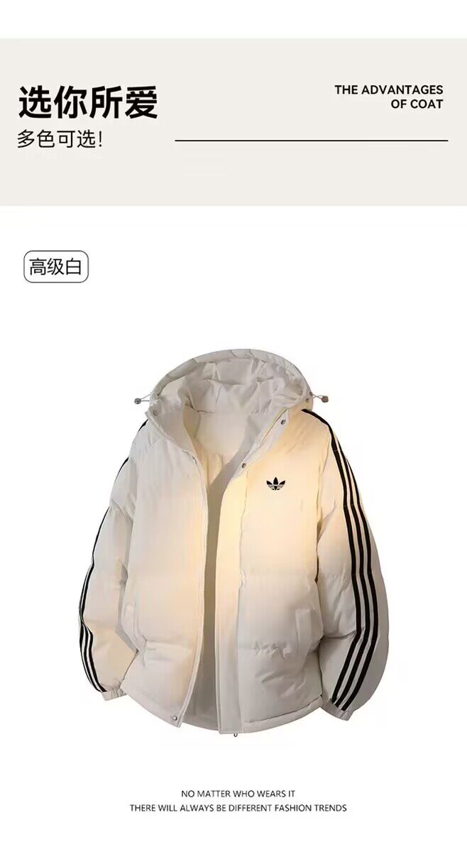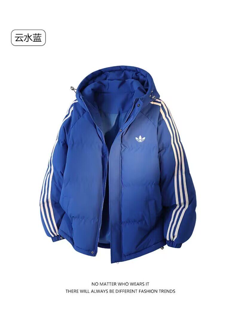 Winter Clover Hooded Cotton Coat for Men and Women, Casual Loose Fit, Large Size, Thickened for Cold Protection and Warmth, Three-Stripe down Cotton Jacket