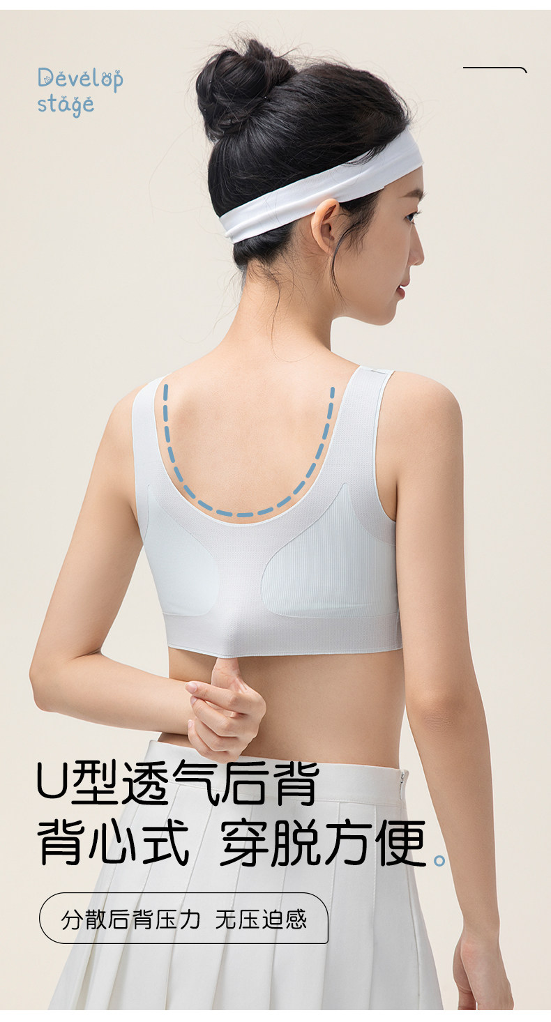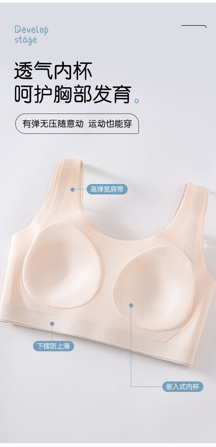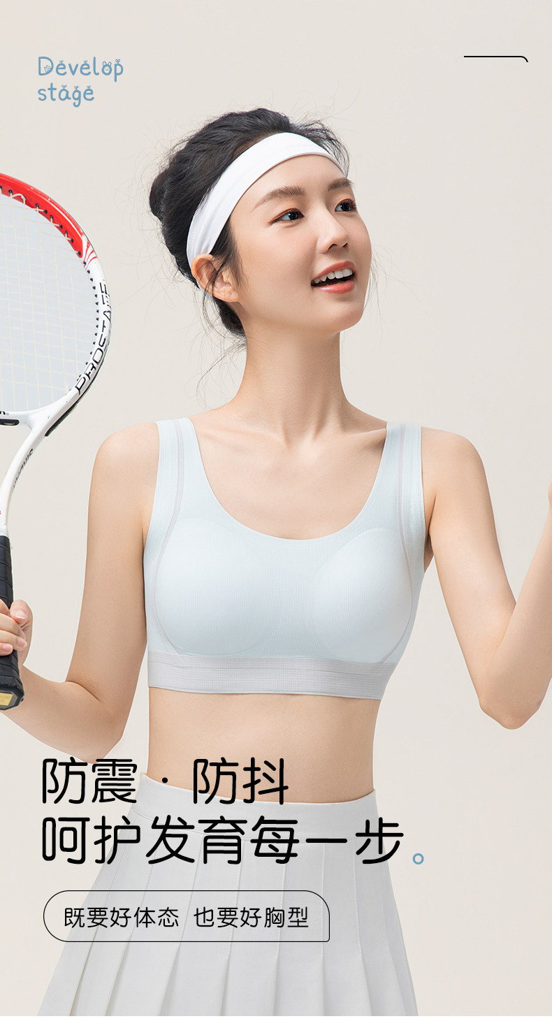 Catman Girls' Underwear for Students and Teenagers in the Developmental Stage, Junior High School Students' Second Stage Sports Shock-Proof Bra for 12-Year-Old Girls