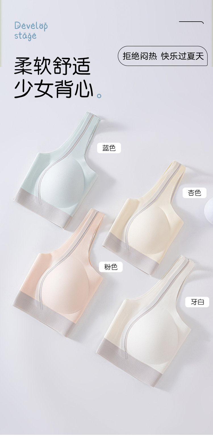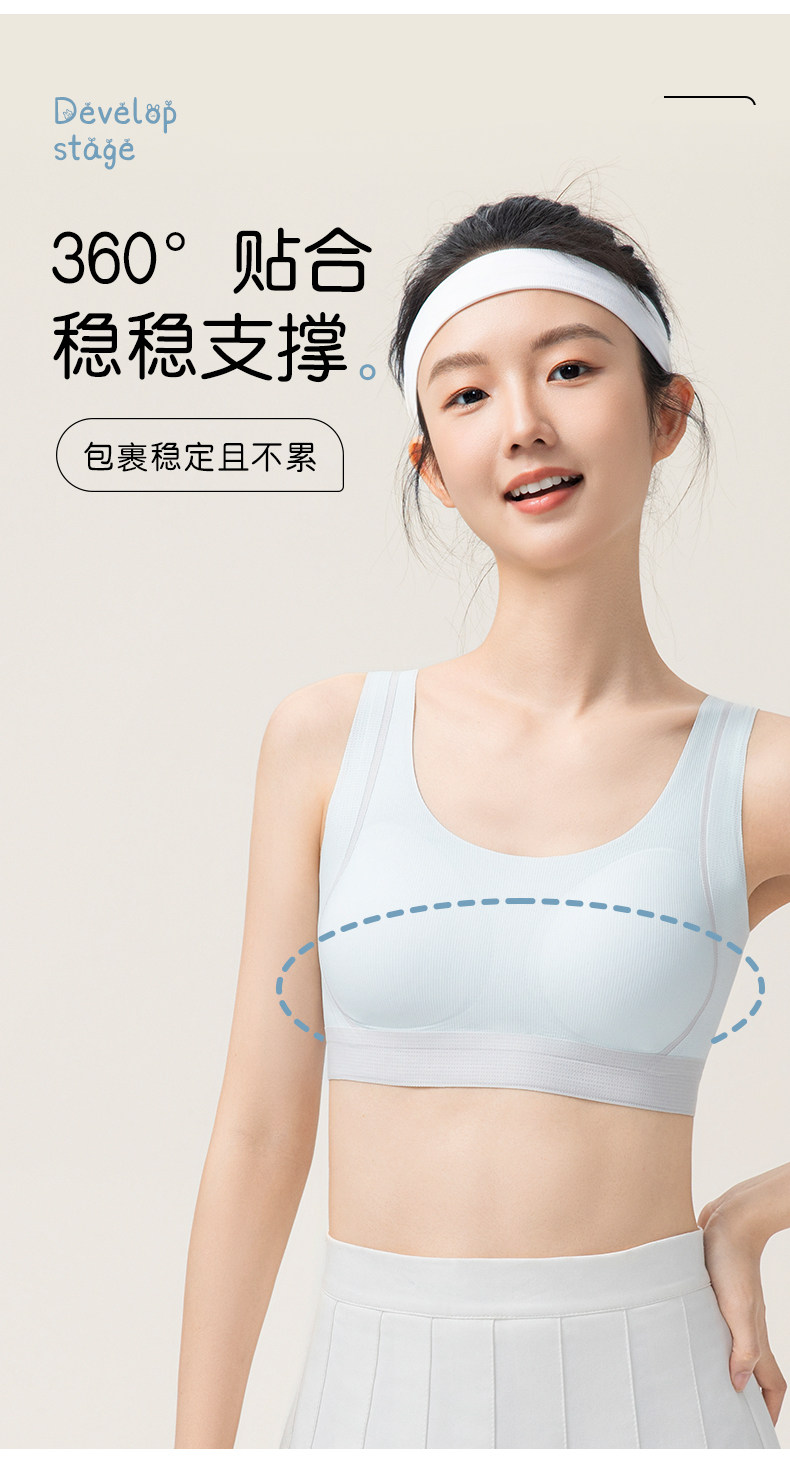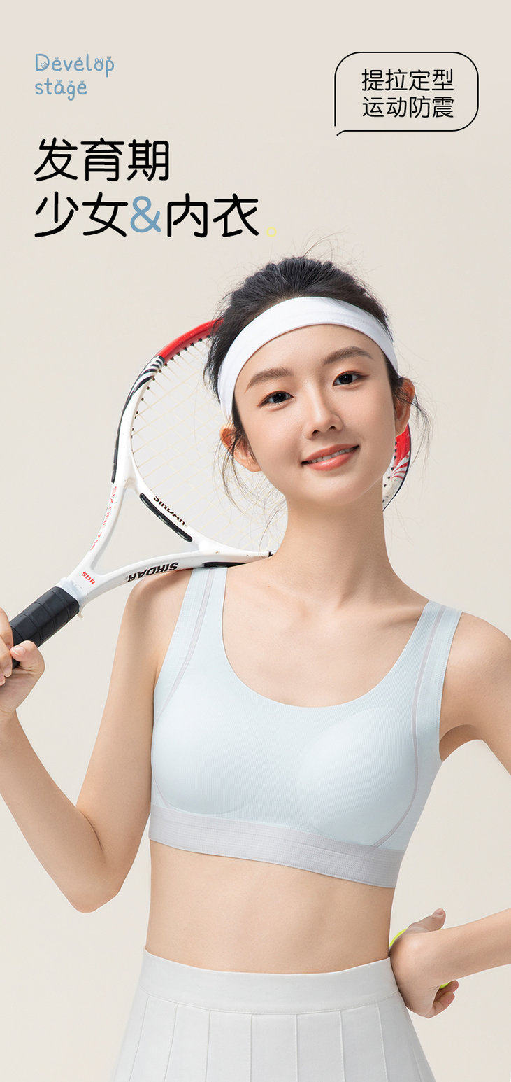 Catman Girls' Underwear for Students and Teenagers in the Developmental Stage, Junior High School Students' Second Stage Sports Shock-Proof Bra for 12-Year-Old Girls