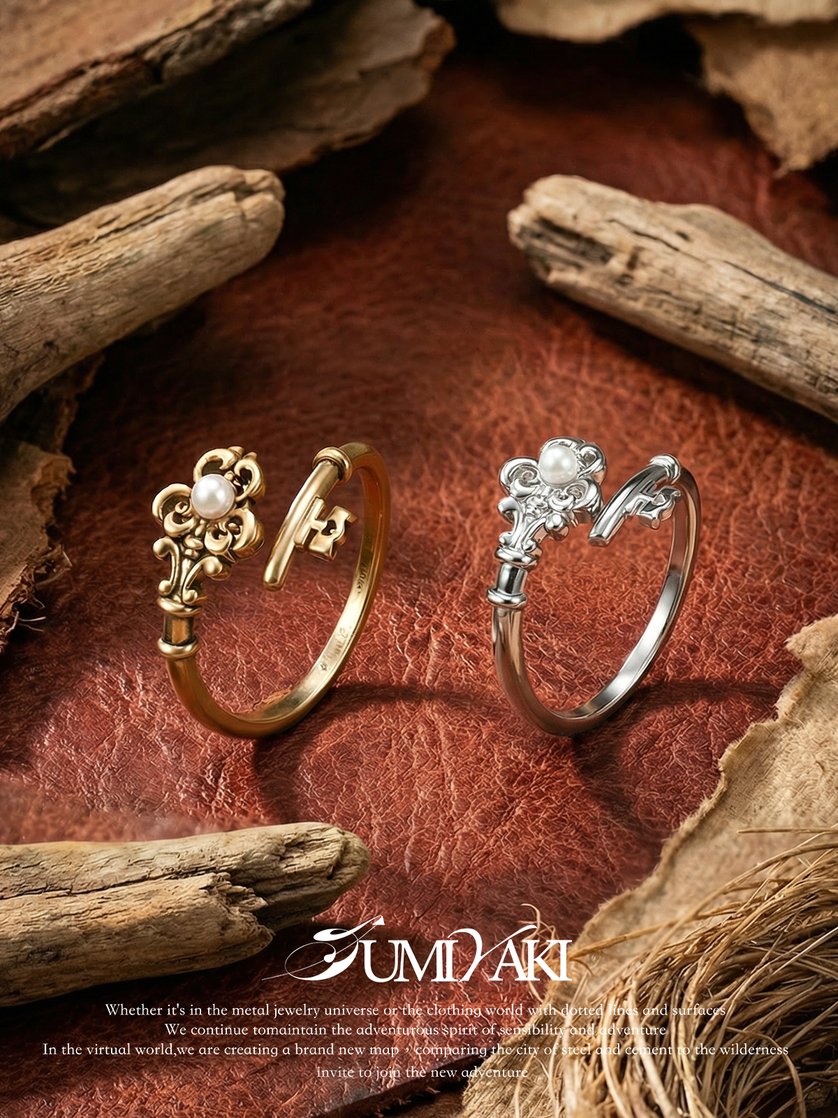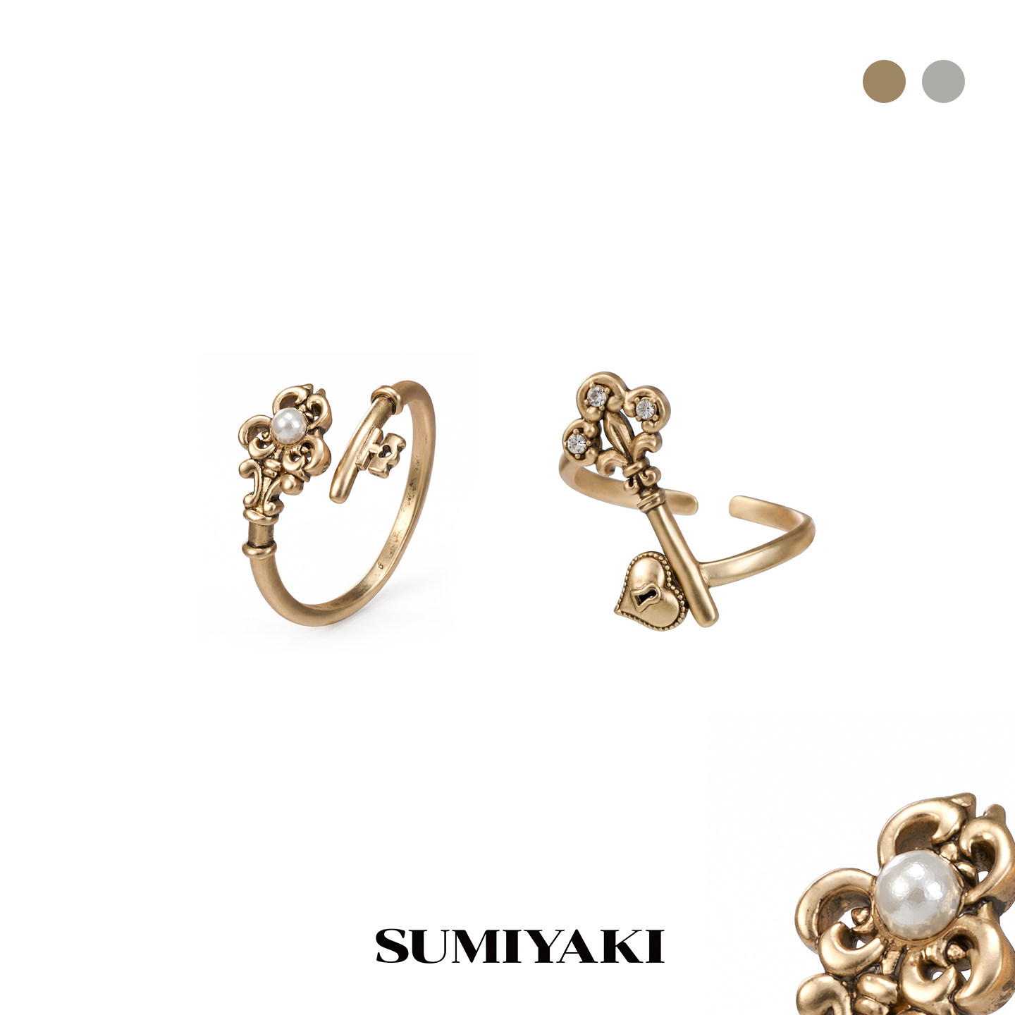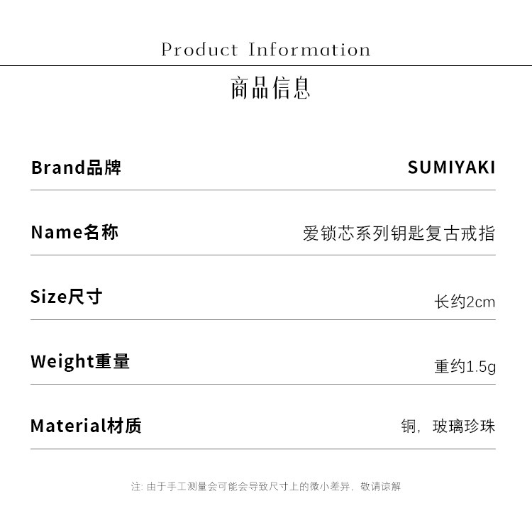 Sumiyaki Love Lock Series Key Light Luxury Retro Ring Set for Women