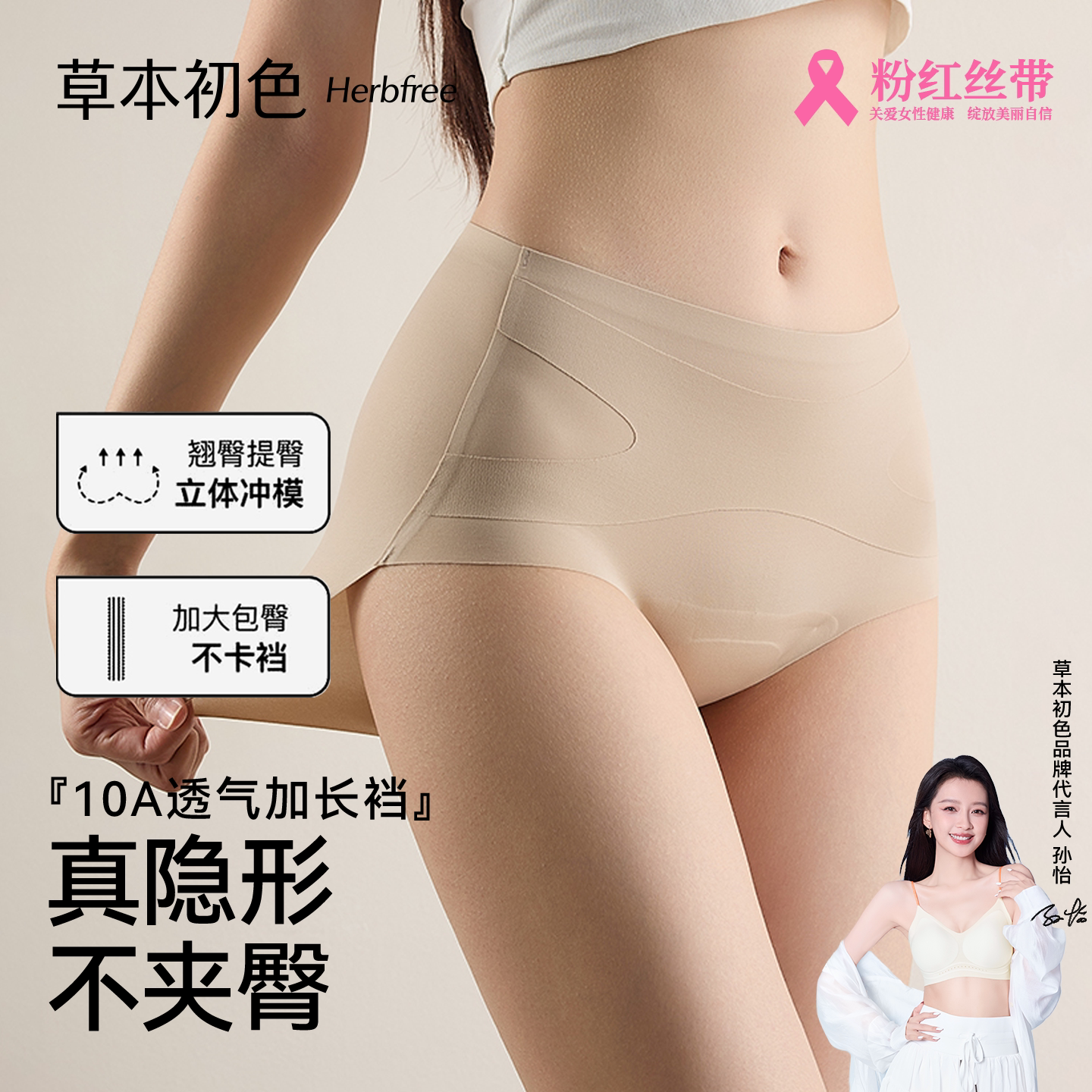 Herbal primary color underwear women's traceless high-waisted abdominal lengthening crotch 10A antibacterial sports boxers 2026 new