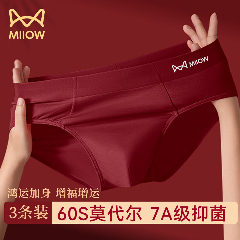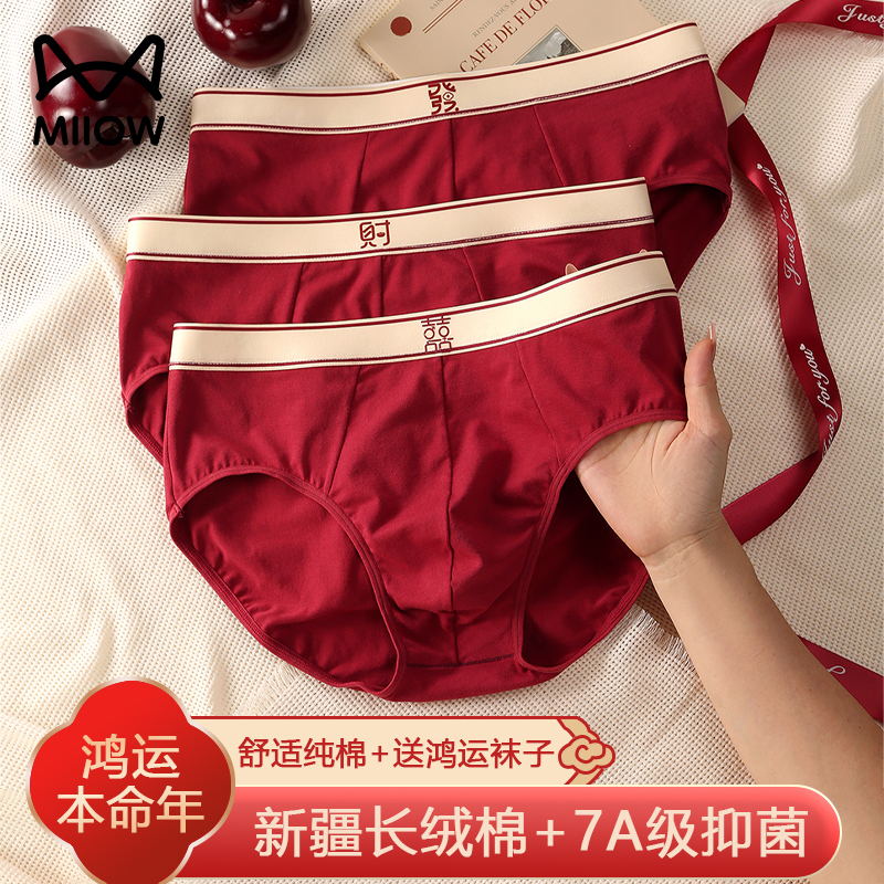 Cat man natal year burgundy men's triangle underwear Modal ice silk wedding gift horse big red shorts