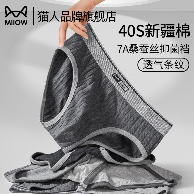 Cat Man Men's Underwear Cotton Silk Antibacterial Shorts 2025 New Teen Draw Needle Breathable Plus Size Briefs