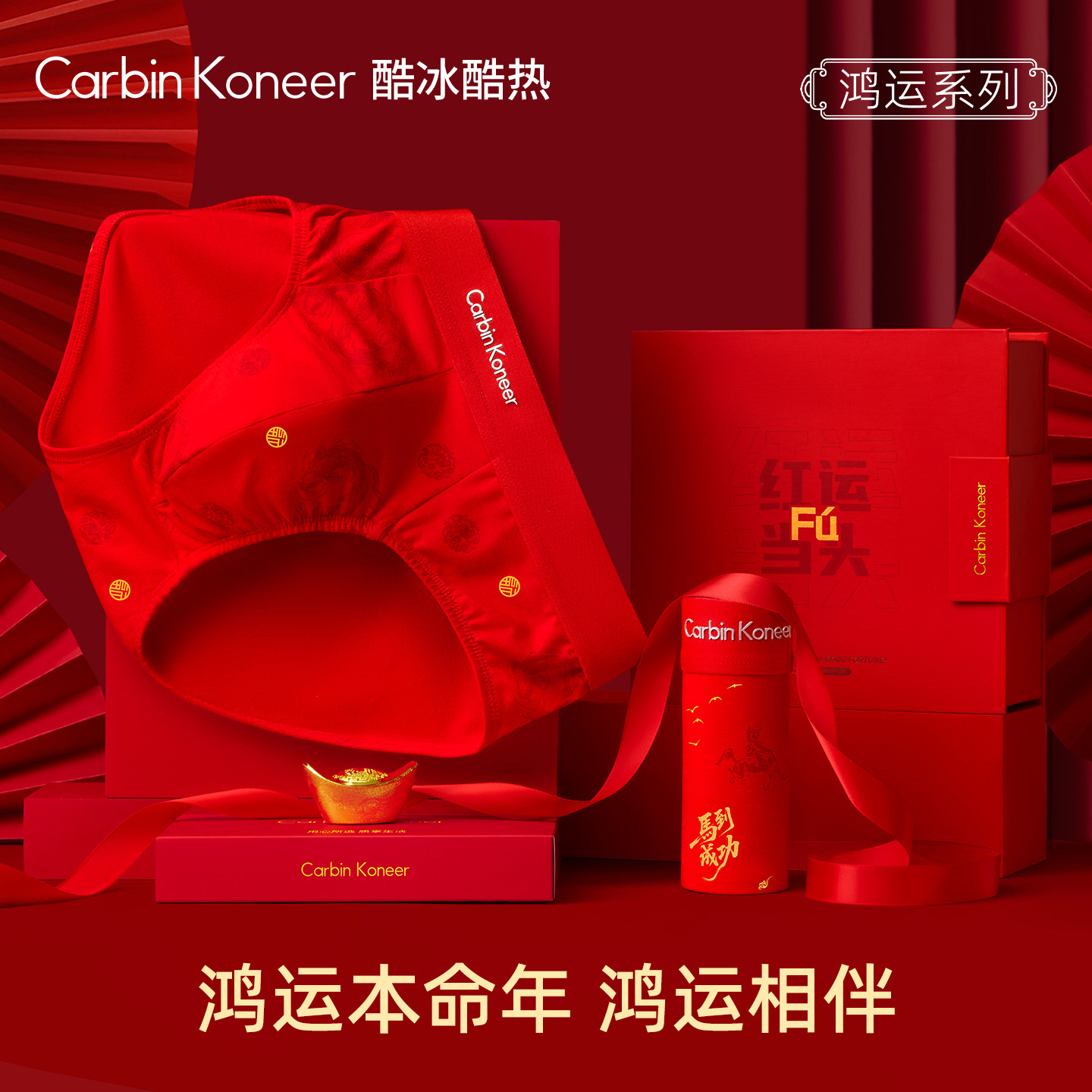 CarbinKoneer Men's Natal Year Panties Men's Briefs Wedding Red Shorts Gift Box 2026 New