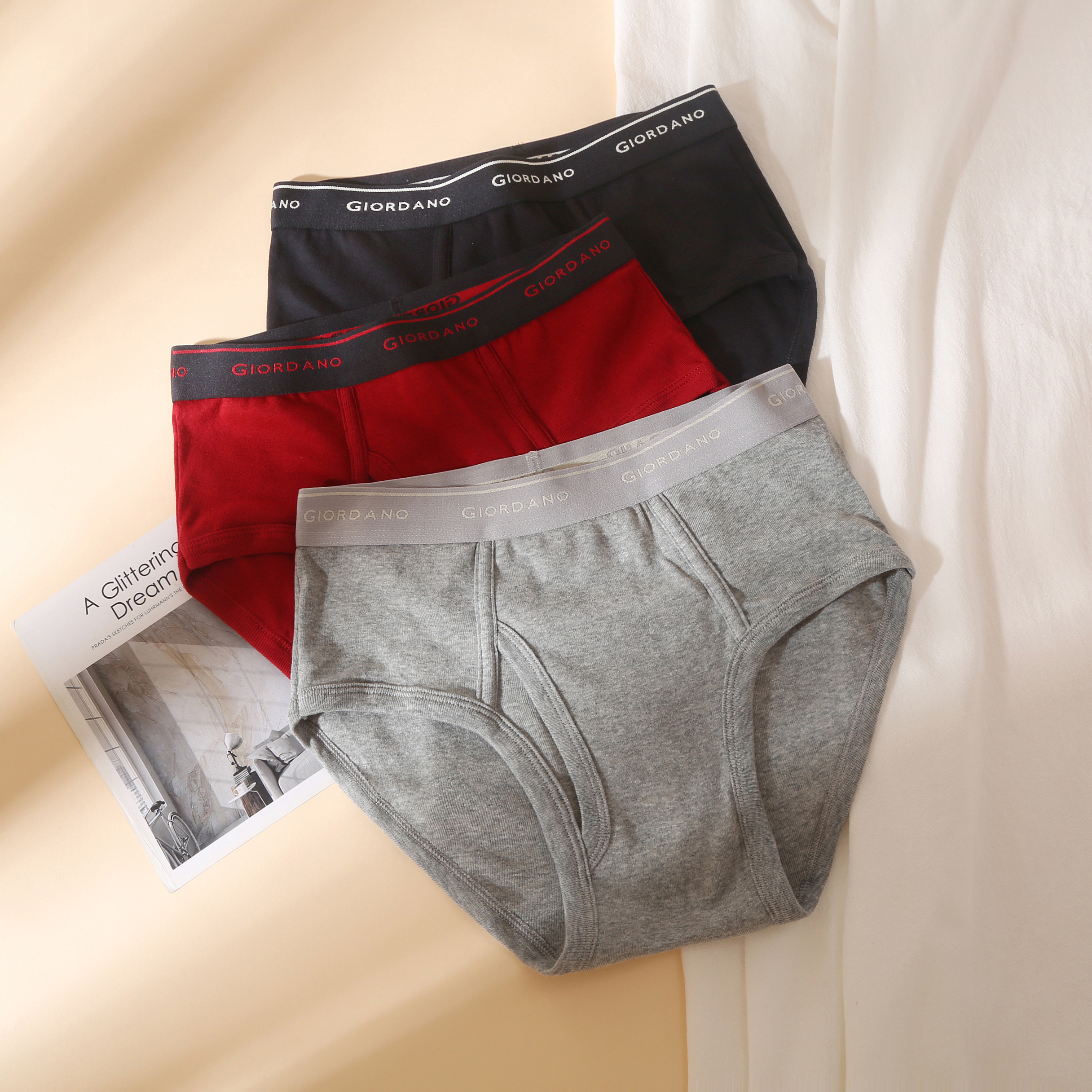 Genuine Giordano Triangle Panties Men's Cotton Comfortable Wide Elastic Waist Briefs Men's Underwear 3 Pieces