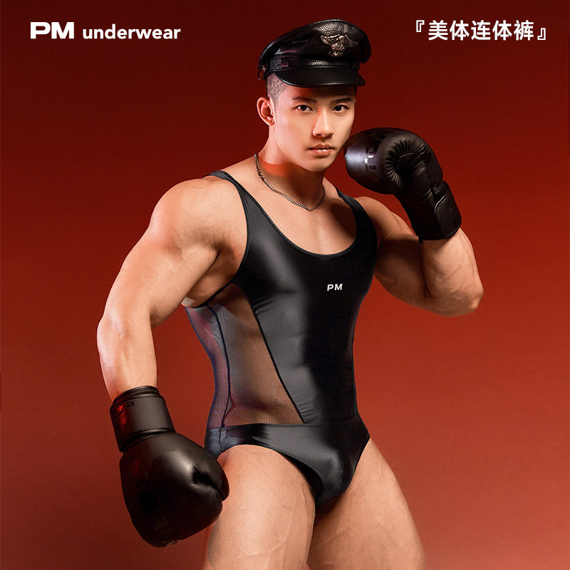 PM midnight moment erotic sleeveless see-through one-piece vest male high elastic muscle hunk body shaping temptation tight top