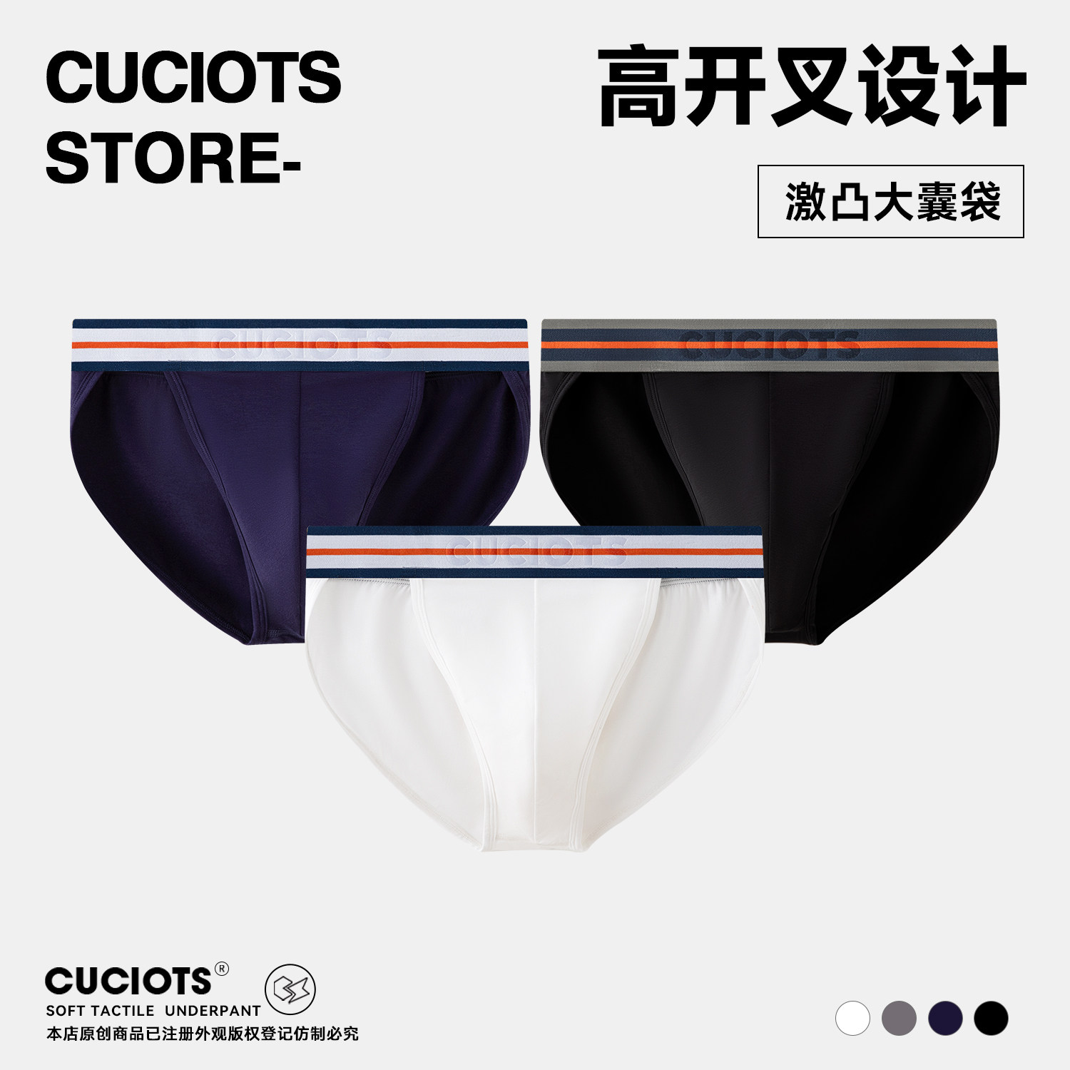 Men's underwear belt solid color low-rise thread three-dimensional embossed comfortable and sexy large pocket U convex triangle shorts top