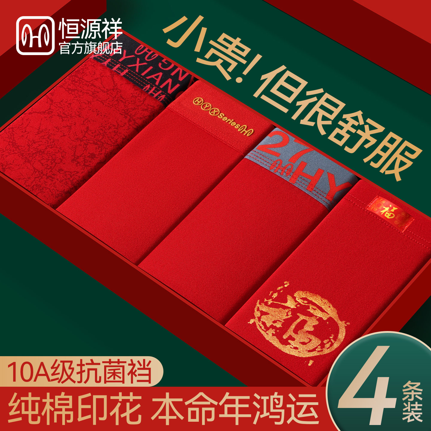 Hengyuanxiang Natal Year Men's Red Panties Cotton Wedding Men's 2026 Year of the Horse Gift Four-corner boxer shorts