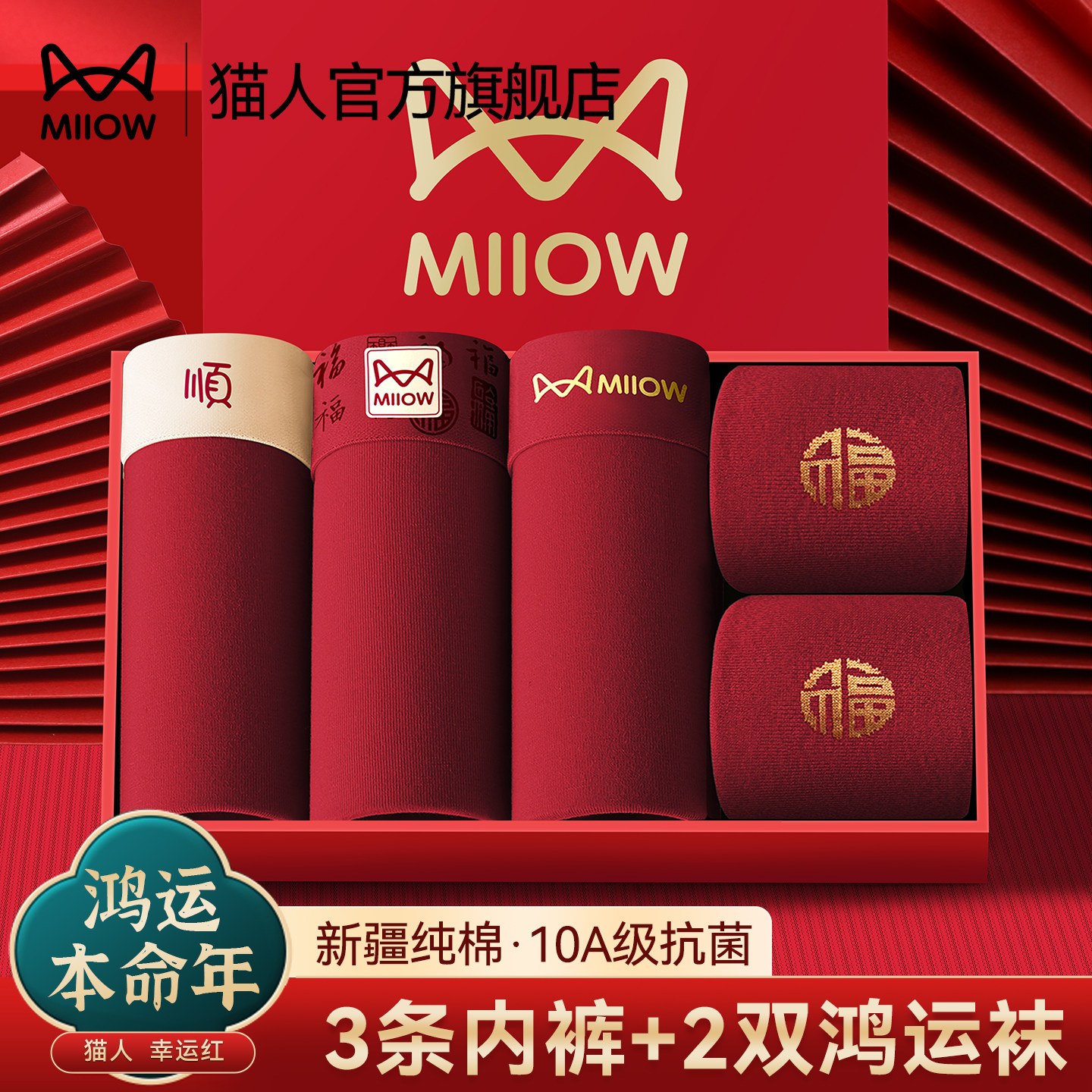 Langsha men's natal year underwear red pure cotton 10A antibacterial pants Year of the Horse autumn and winter gift shorts socks