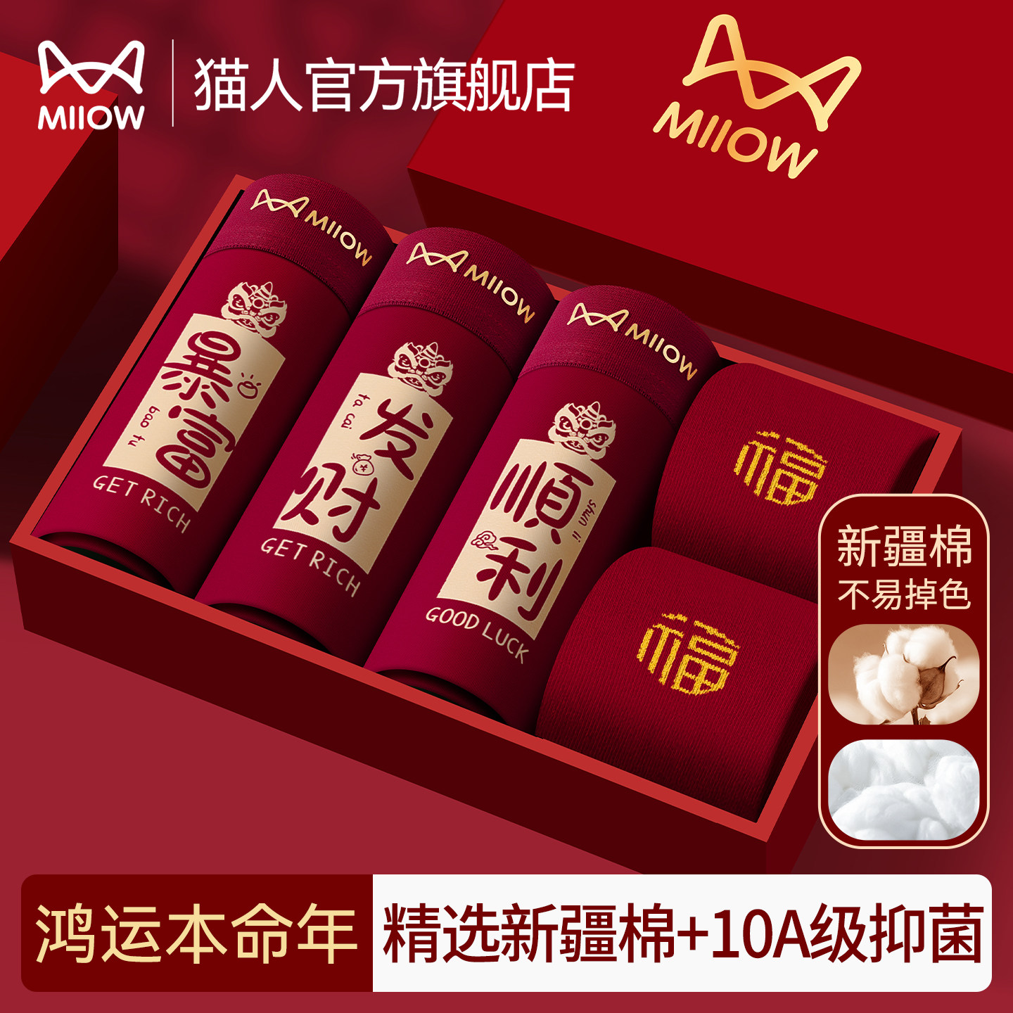 Cat man natal year men's underwear boys pure cotton big red boxer shorts 2026 Year of the Horse wedding boxers