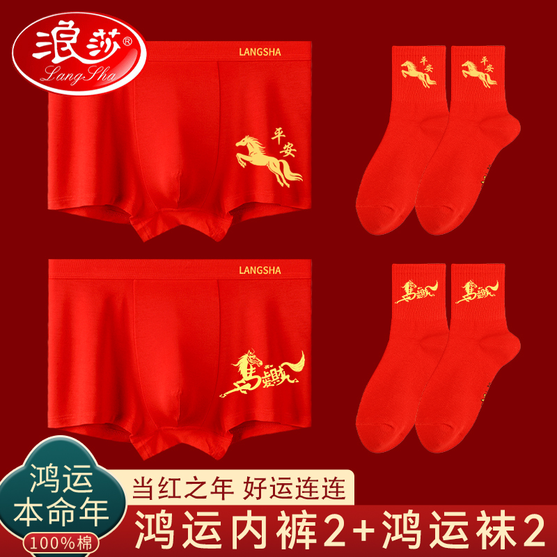 Langsha Natal Year Red Panties Men's Pure Cotton Boxer 2026 New Horse Wedding Gift Boxer Shorts