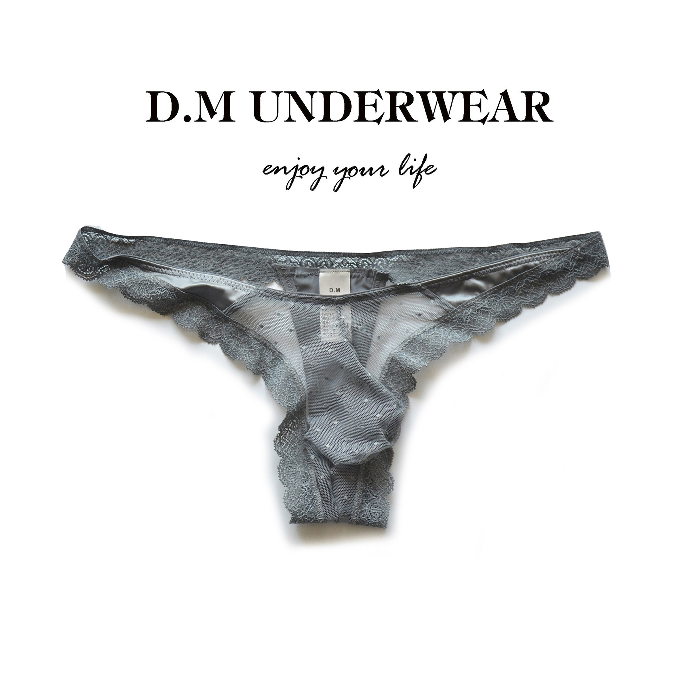 D.M sexy lace thong men's low-rise black T-pants youth quick-drying panties transparent sexy single tone mesh