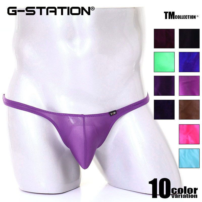 NissanTM sexy men's thong soft and comfortable oily shiny tight low-rise convex pocket T-line underwear