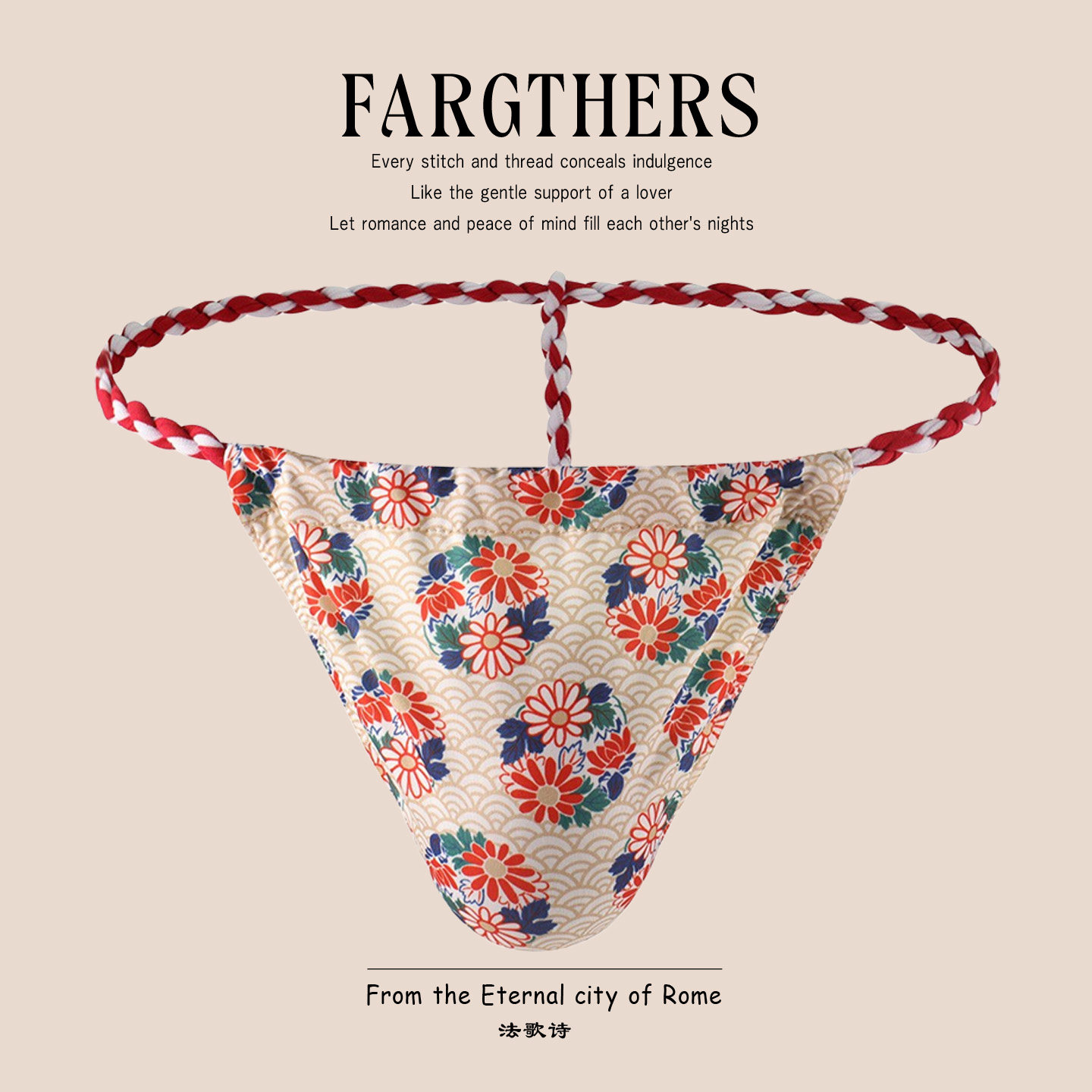 FARGTHERS Italian Genuine 2026 Spring Men's Sexy Low Waist Thongs Tie Rope Japanese Print