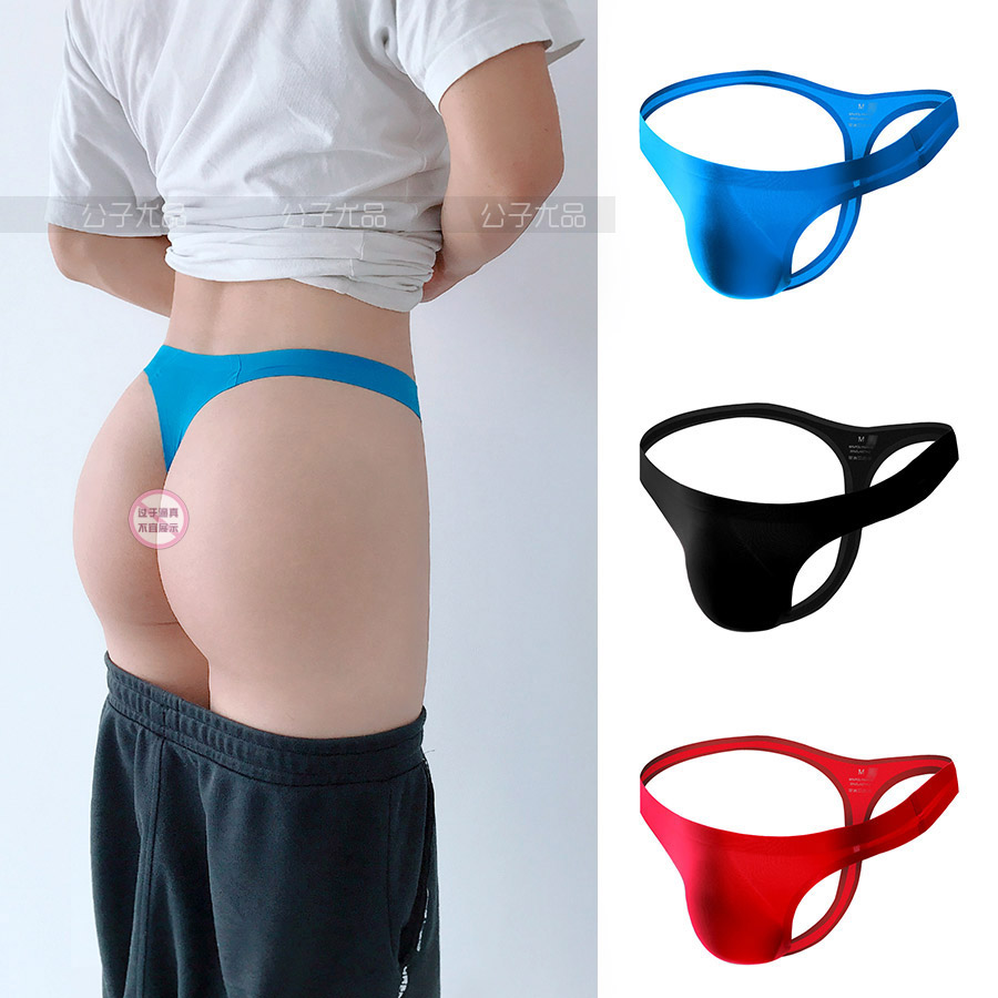 Gongzi Youpin 2 sexy men's thong thin straps cross-tie wind hollow enlarged pocket ice silky T-pants