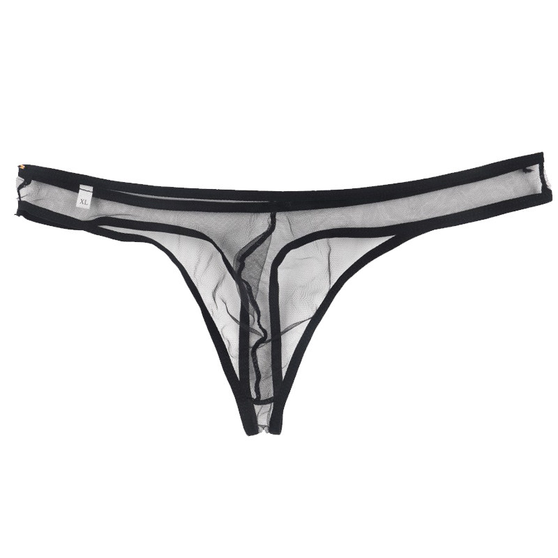 Men's mesh sheer panties lace no trace sexy mesh pocket solid color youth see-through boys thong