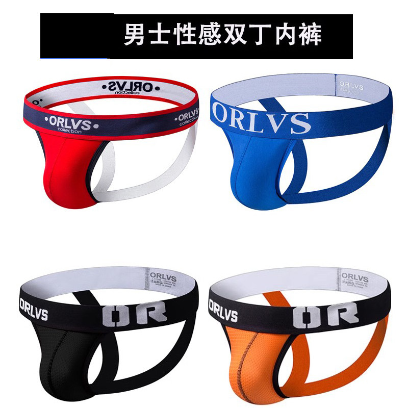 Two pieces of men's underwear, cotton, comfortable and breathable, low-rise back cut-out double thong, sexy hip-lifting sporty taste