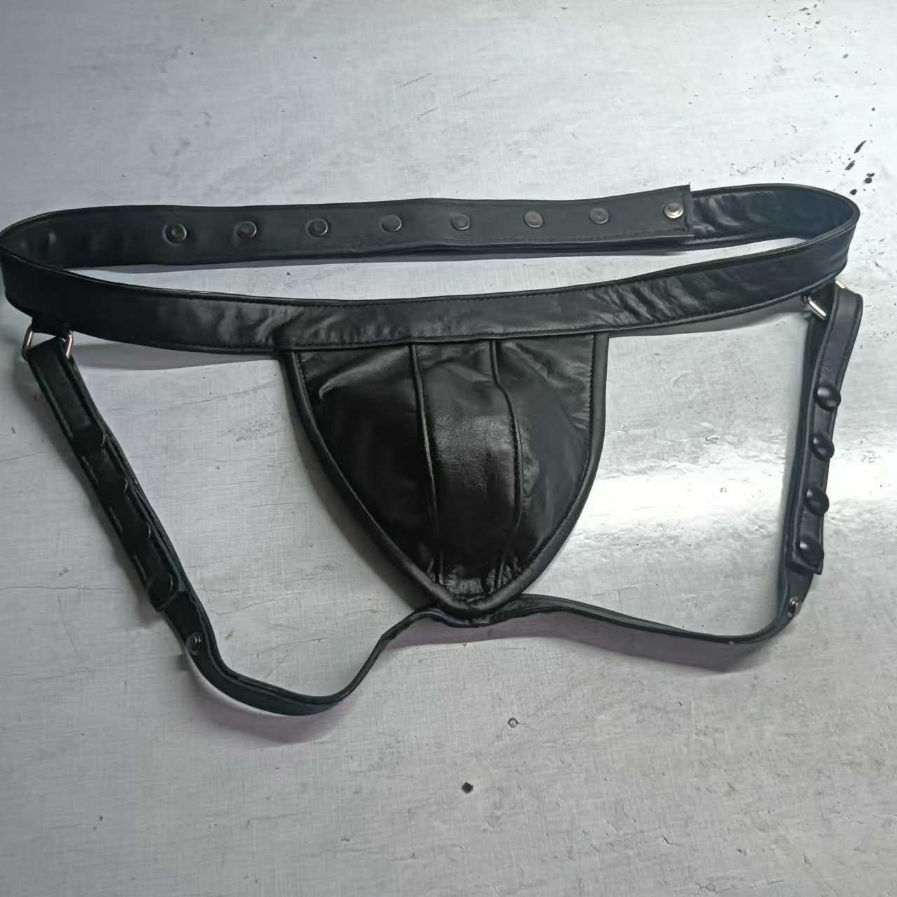 Men's cowhide buttock lift panties thong trendy black low-rise leather shorts sexy single Ding double T-shaped men