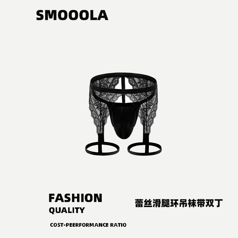 D.M men's panties low waist sex fun temptation lace black silk mesh transparent thong single Ding thread hollow personality