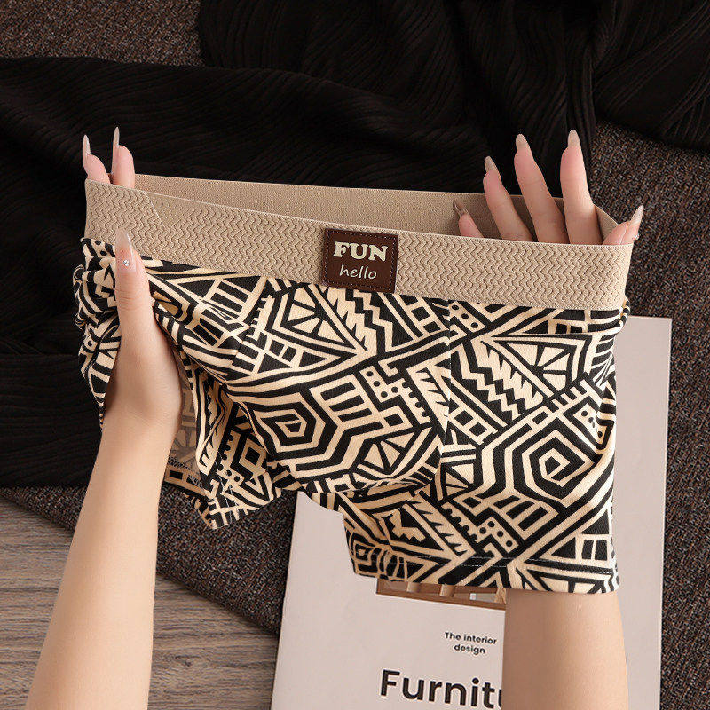 Cotenn ON Trendy Men's Panties Youth Geometric Print Cotton Shorts Sexy Comfortable Boxers