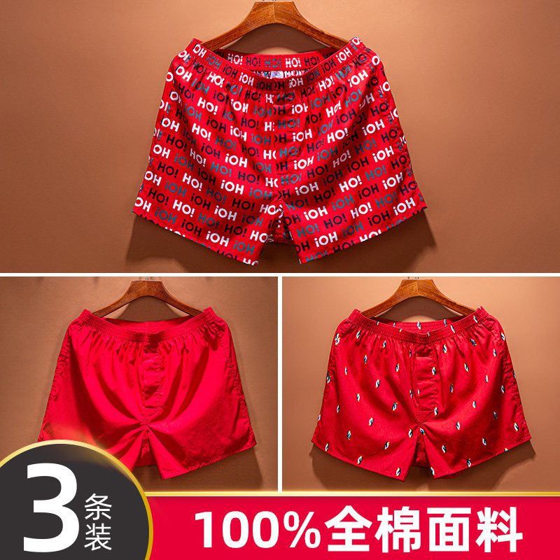 Natal year, big red arrow pants, pure cotton loose men's underwear, plus size cotton boxers, sleeping shorts