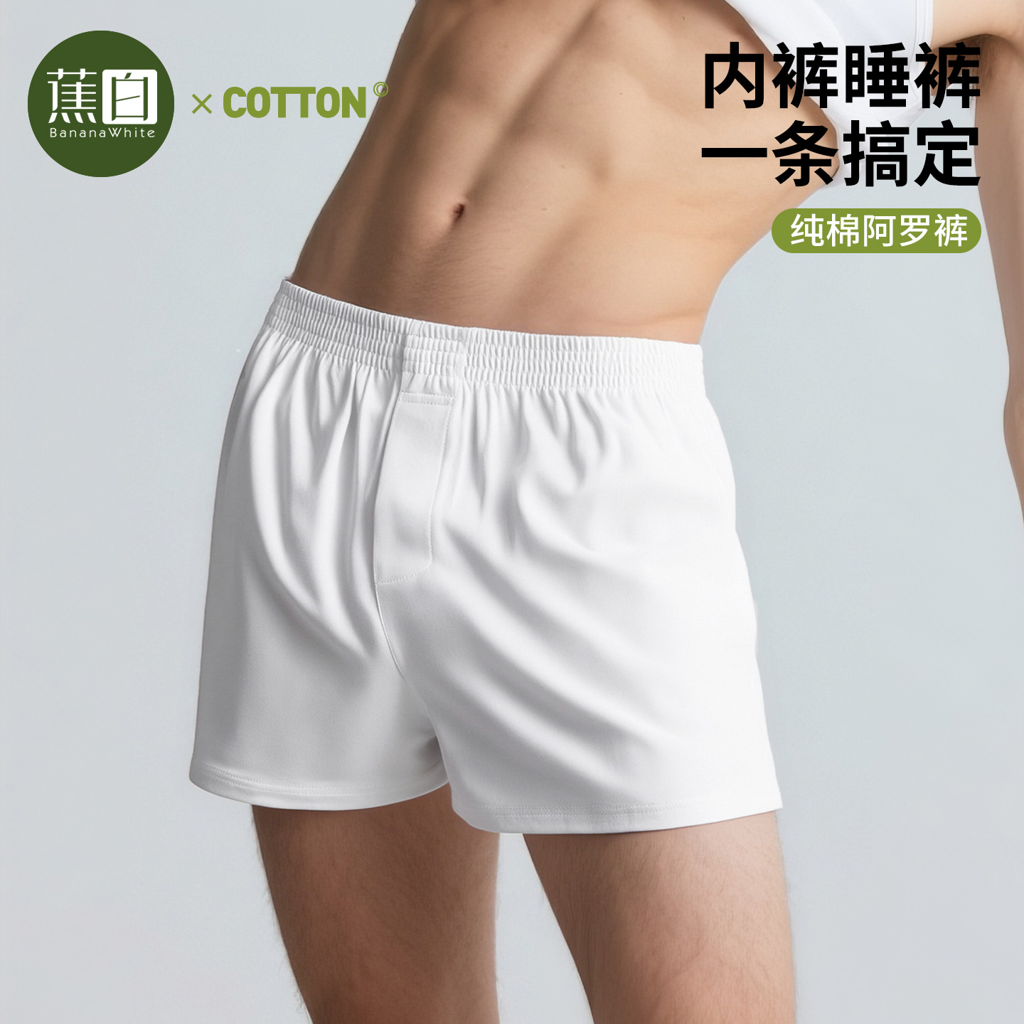 Banana white arrow pants, underwear for men, loose and unrestrained, naked sleeping, breathable plus-size home pajamas, pure cotton boxer shorts