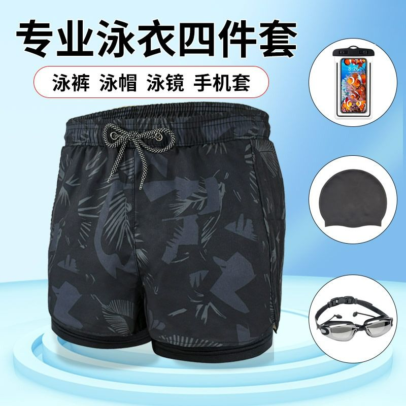 Men's swimsuit set new adult swimsuit teenager double-layer swimming trunks anti-embarrassment boys hot spring equipment