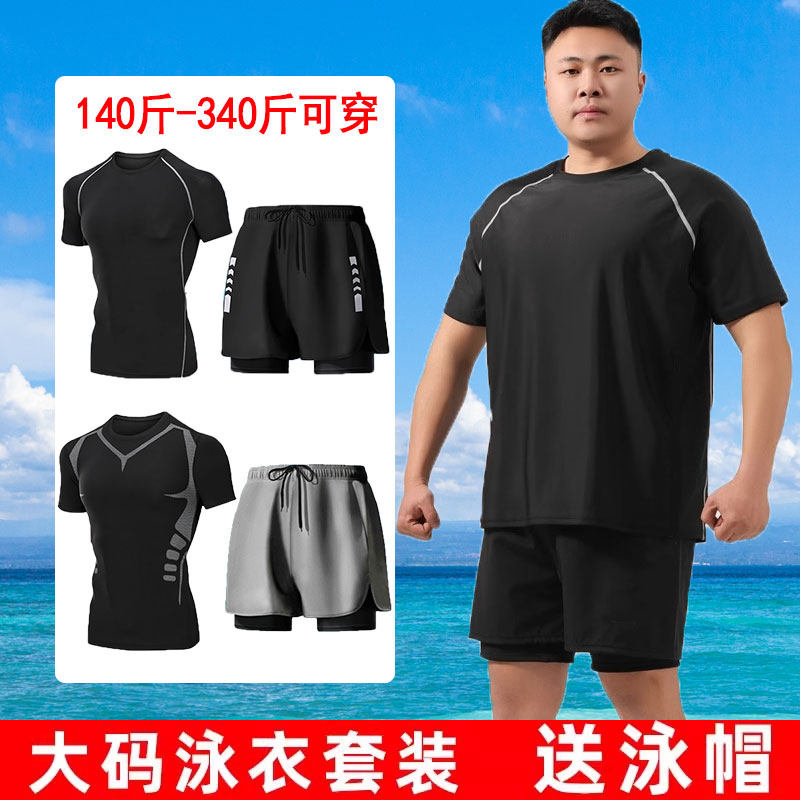 Men's extra large size fat swim trunks fattening enlarged hot spring rafting anti-embarrassment double-layer swimsuit set 300 pounds