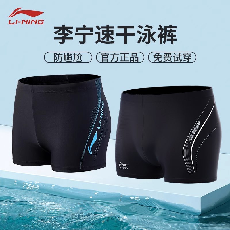 Li Ning Men's Swimming Trunks Men's Adult Professional Swimming Trunks Boxer 2025 New Official High-end Swimsuit Set Equipment