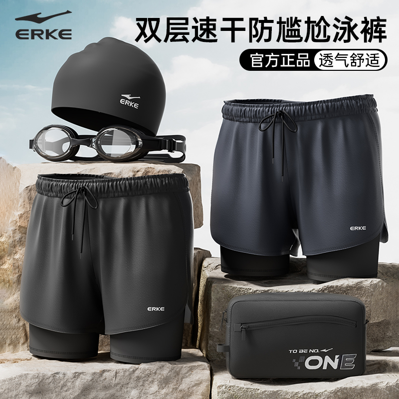 ANTA Swimming Trunks Men's Double-Layer Quick-Drying Men's Beach Launchable Shorts Adult Teen Hot Spring Swimming Trunks