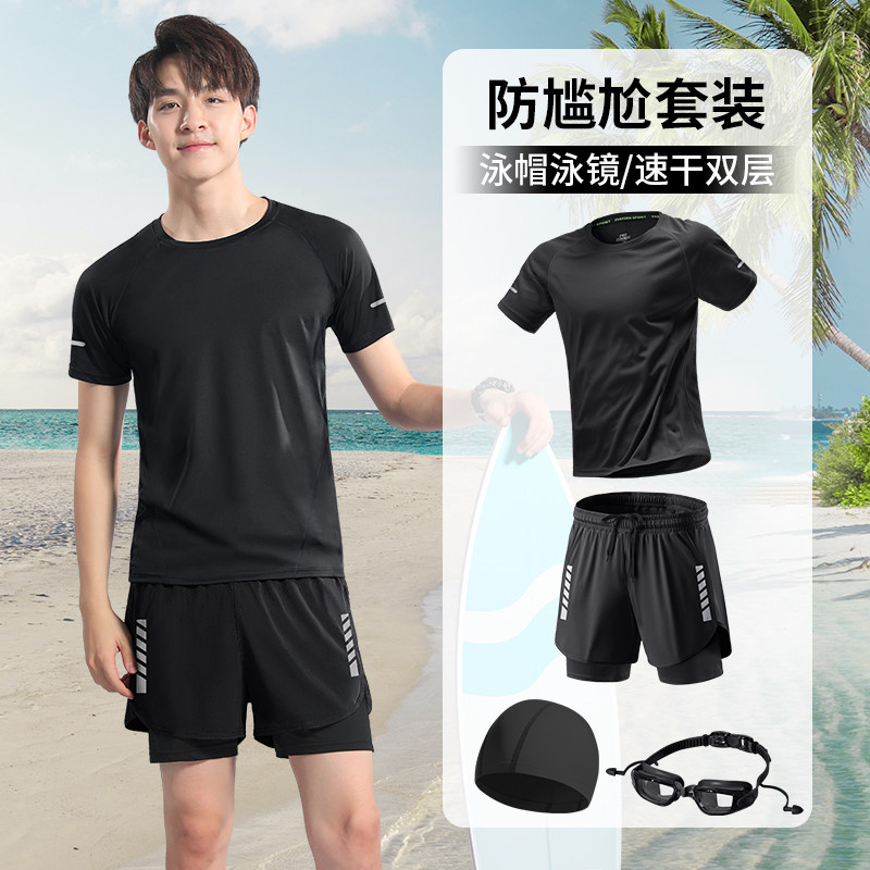 Swimsuit set men's anti-embarrassment swimming trunks youth men's beach swimming quick-drying adult swimming equipment complete set