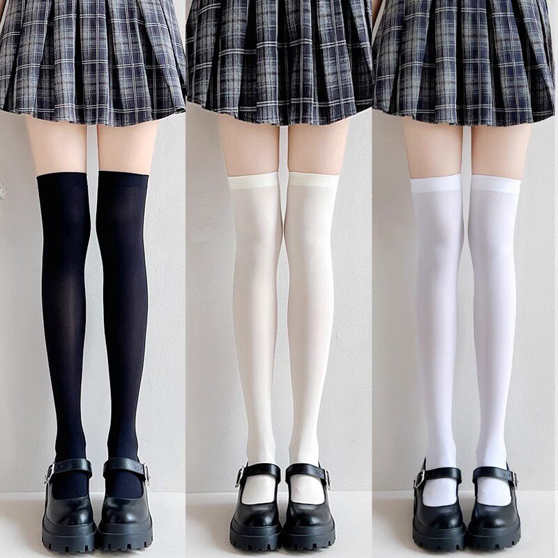 White silk stockings, women's high high-top non-slip, elongated white JK calf stockings, half thigh winter thickened over-the-knee socks