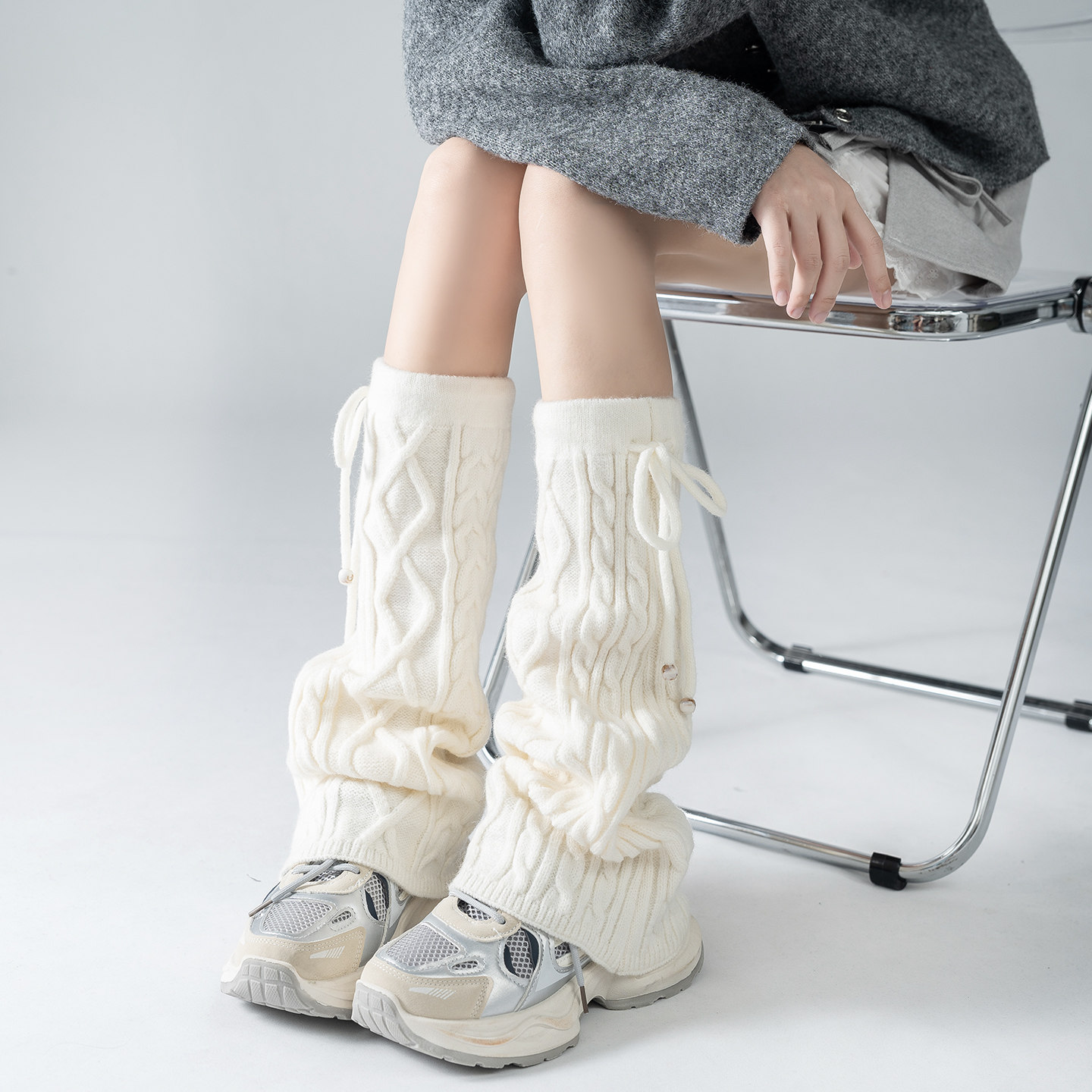 SS2L Japanese classic yarn knitted girlish style thickened warm snow boots socks cover leg cover over the knee pile sock girl