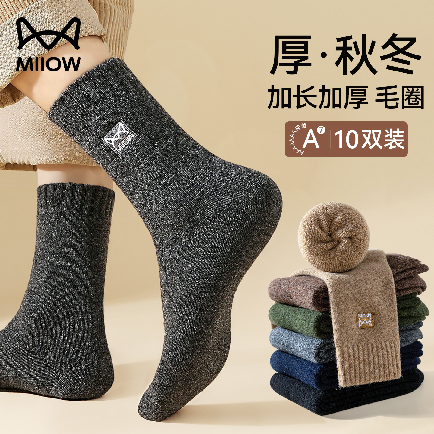 Cat Man Thickened Socks Men's Winter Fleece Mid-Length 2025 New Popular Warm and Heated Men's Terry Cotton Socks
