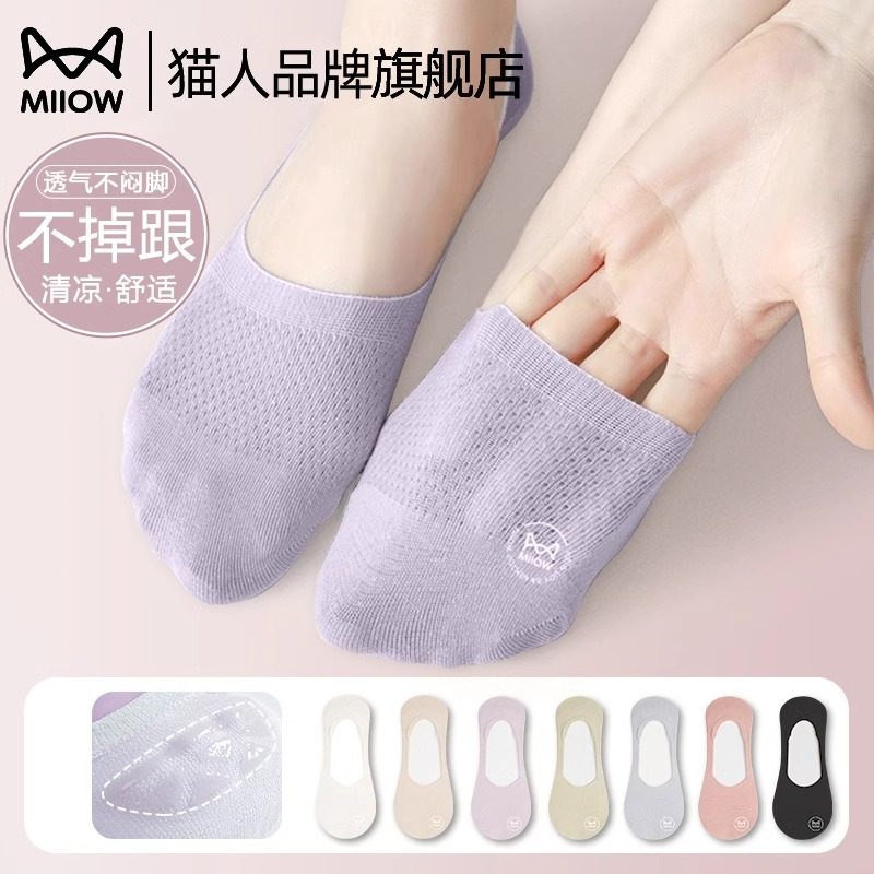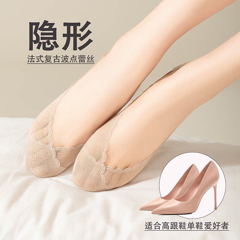Ice boat socks for women summer thin invisible shallow shoes socks pure cotton non-slip heel high heel socks for women