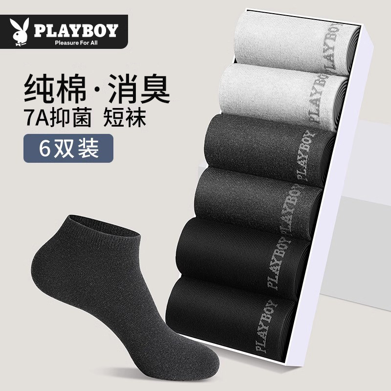 Playboy men's socks men's cotton socks sweat-absorbing and deodorizing cotton short men's socks 7a antibacterial boat socks for men