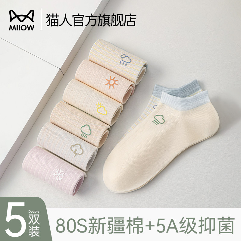 Cat man socks women's summer thin spring socks antibacterial sweat-absorbing solid color cotton socks non-slip and women's boat socks