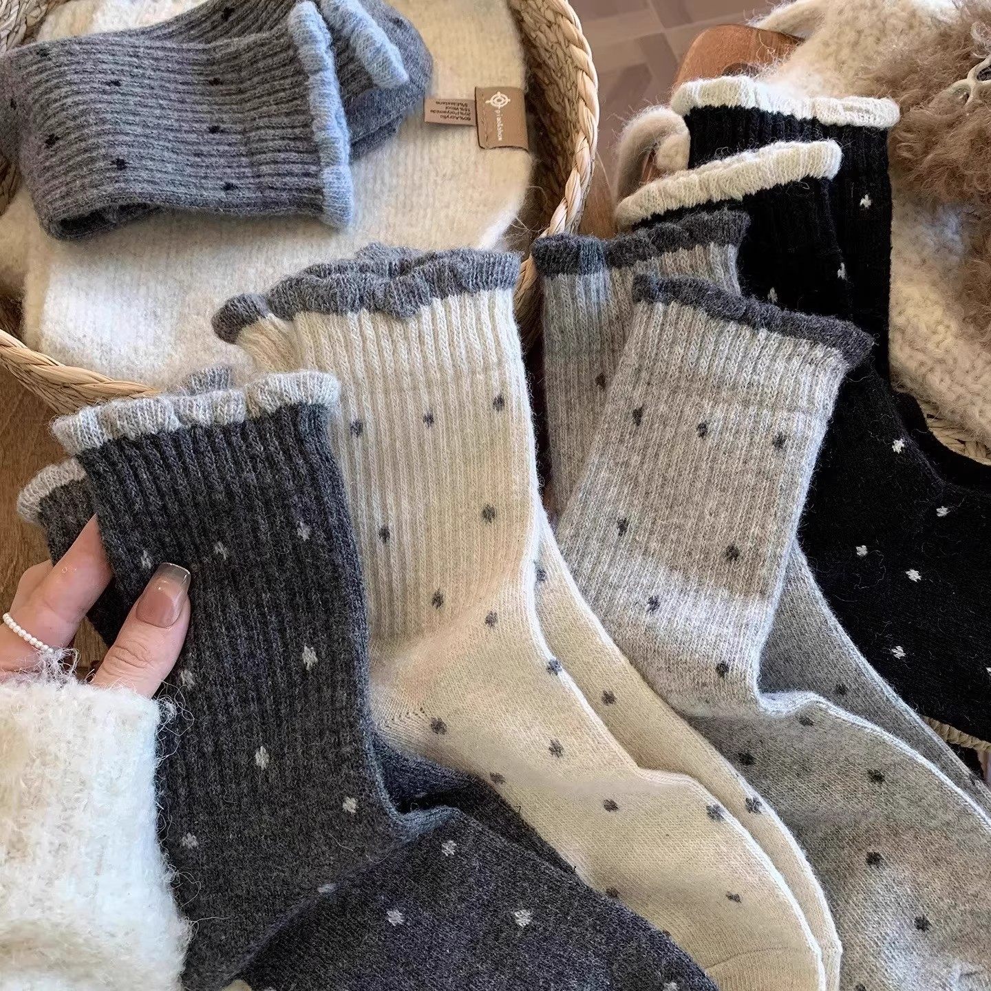 Autumn and winter polka dot lace socks women's socks fall and winter Japanese trend retro pile socks socks are comfortable