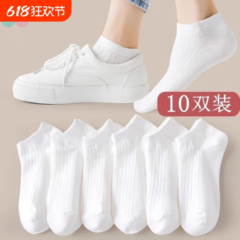 Socks, women's cotton socks, summer anti-athlete's foot, anti-odor, sweat-absorbing, breathable, shallow-mouth, spring and autumn, white new boat socks, short style
