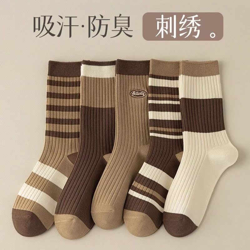 White socks, women's socks, spring and autumn cotton deodorant and boneless confinement socks, medium summer black women's with small leather shoes