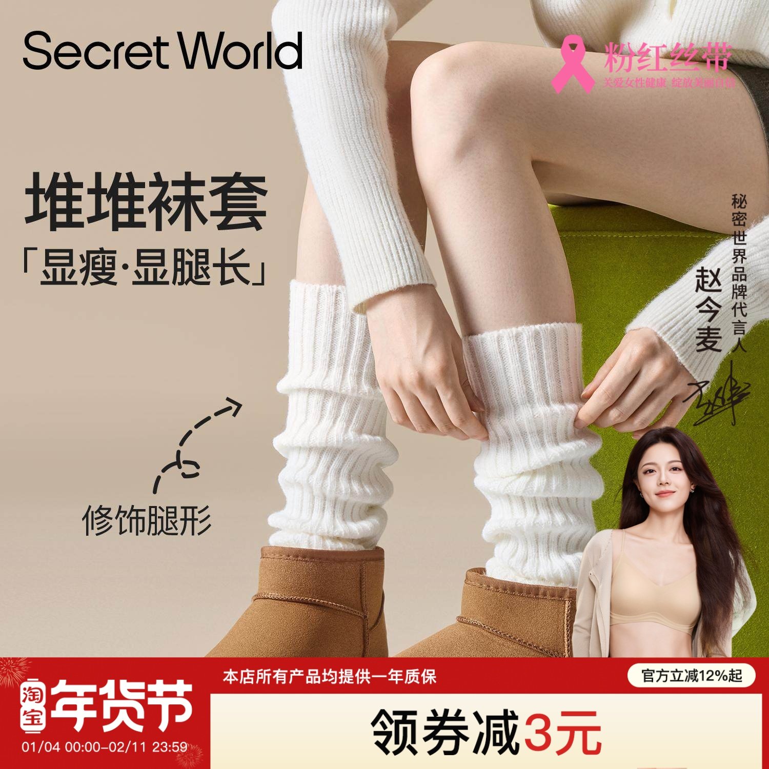 【Zhao Jinmai Same Style】Socks Women's Pure Cotton Autumn and Winter Mid-Leg Socks Antibacterial, Anti-odor, Sweat-Absorbing, Breathable Stacked Socks