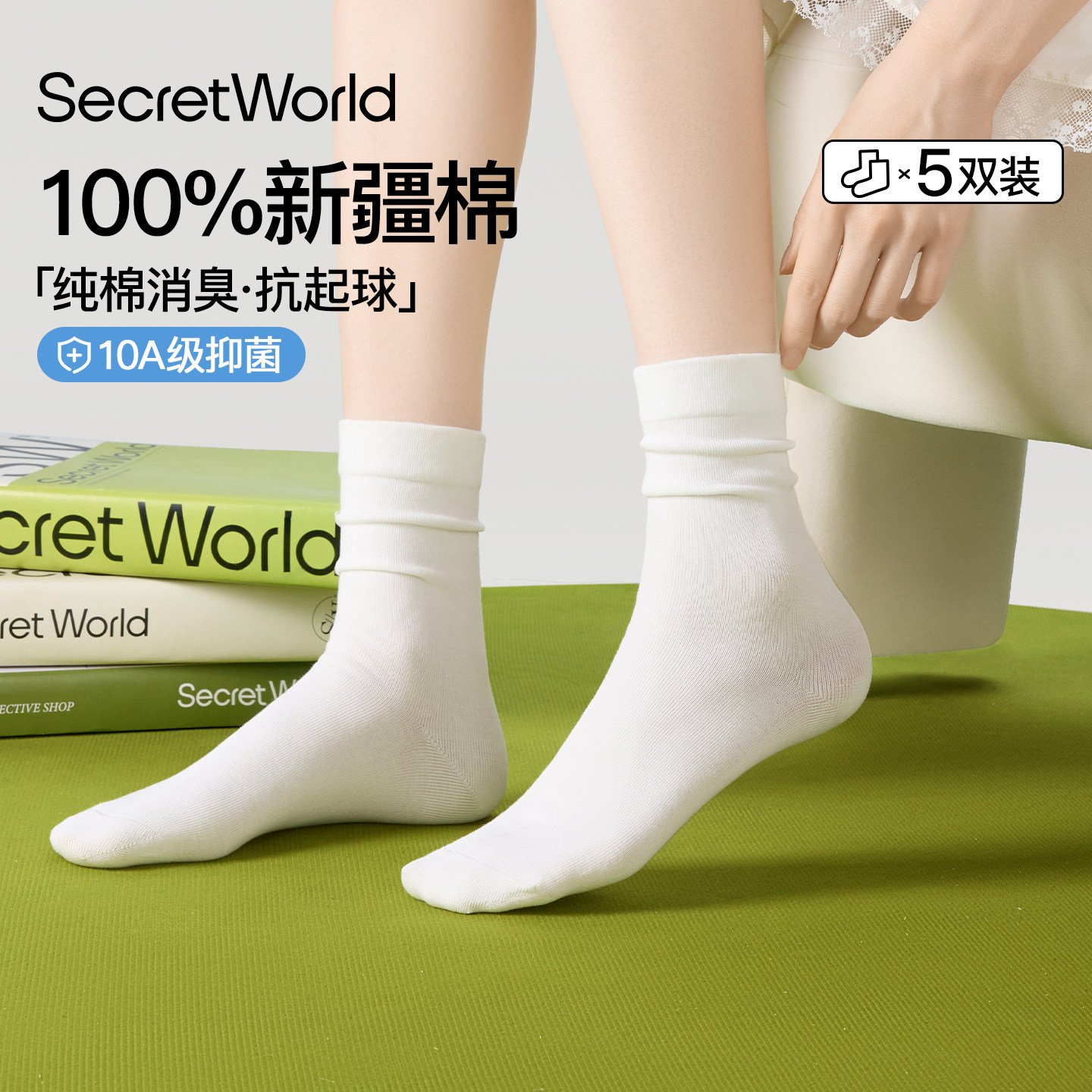 100% pure cotton white socks women's spring and summer mid-leg socks anti-odor pile socks boneless confinement stockings cotton antibacterial