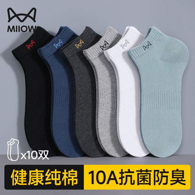 Cat man socks men's summer thin socks pure cotton cotton anti-odor and sweat-absorbing summer men's sports short boat socks