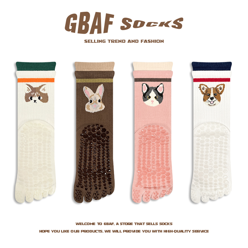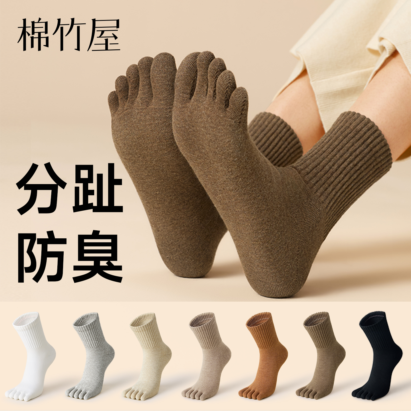 Five-finger socks women's pure cotton mid-leg socks autumn and winter tabi anti-slip and anti-odor sports spring and autumn boneless stockings