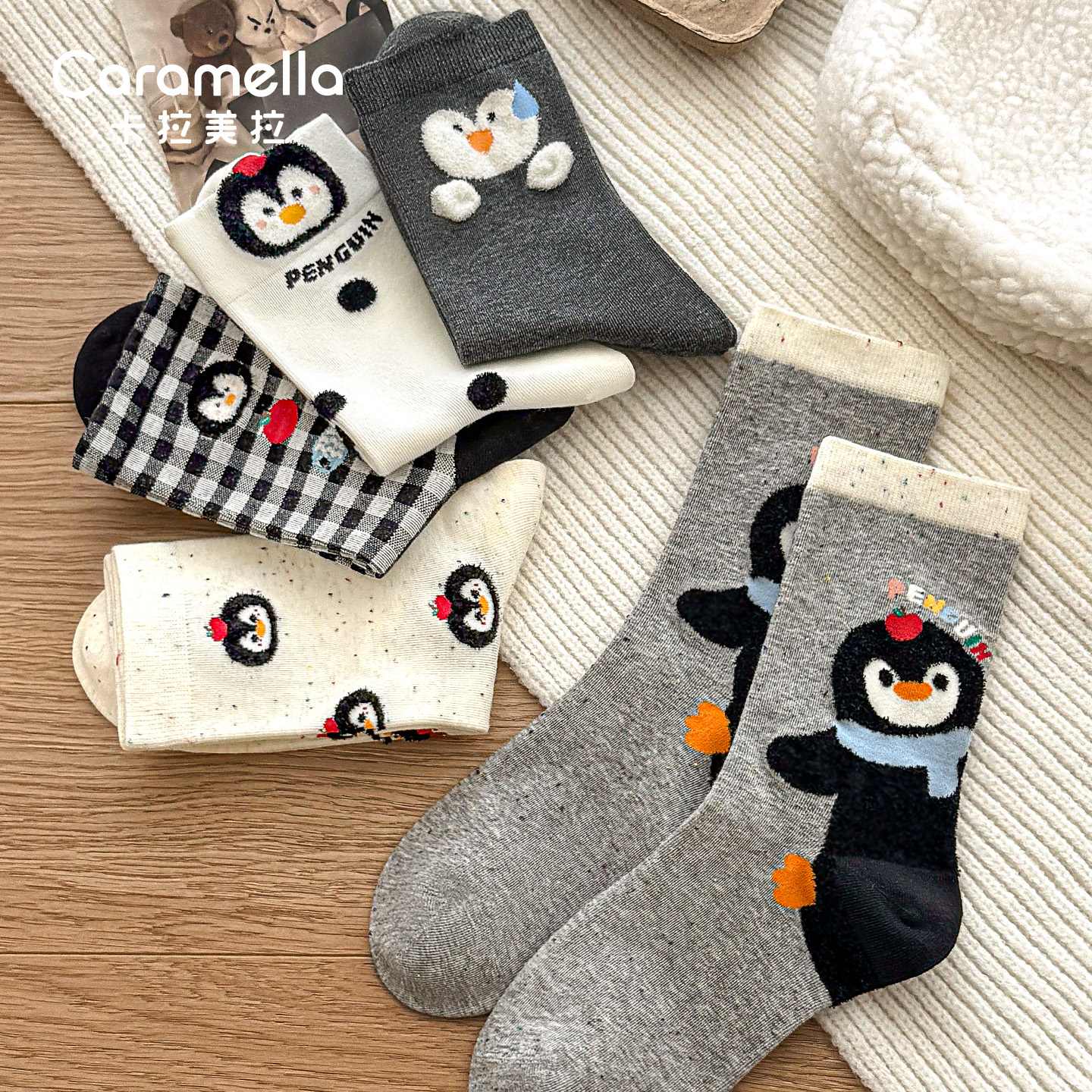 Caramella autumn and winter explosive cotton socks women's mid-leg socks are cute and versatile, penguin warmth with girls' socks