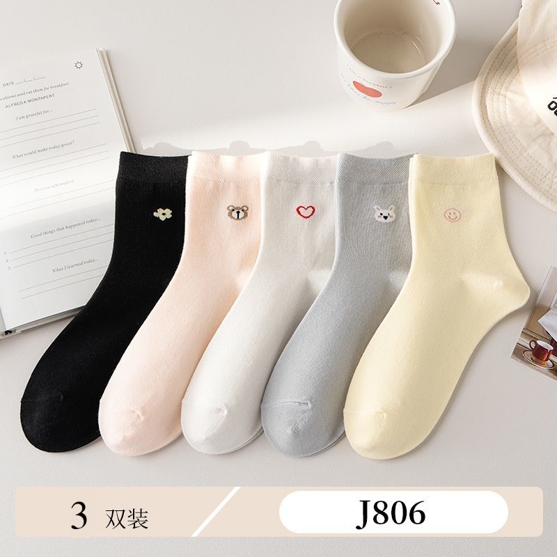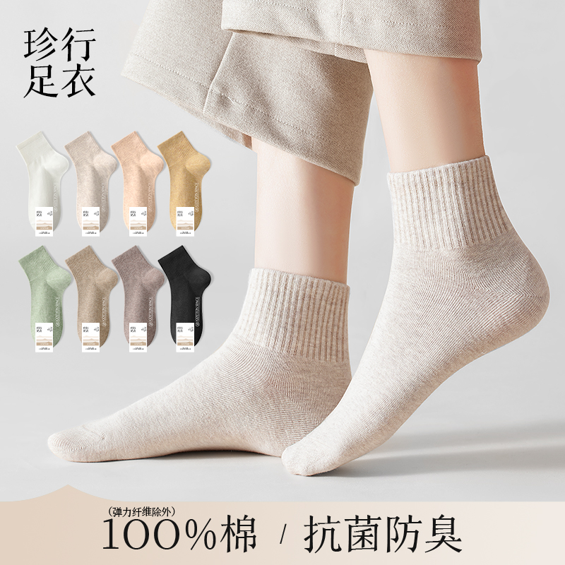 100% cotton socks women's autumn and winter pure cotton mid-leg socks absorb sweat and breathe, cotton antibacterial and odor-proof boneless confinement piles piled up socks