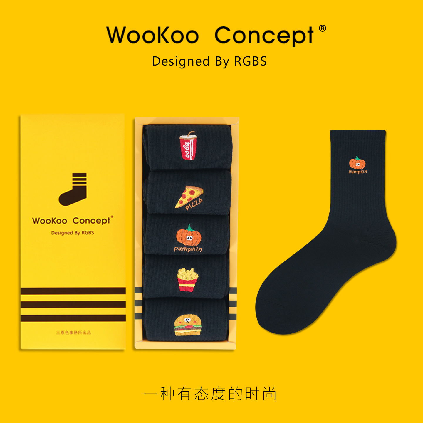WooKoo Socks Men's Mid-Leg Personality Embroidered Black Casual Sports Socks White Women's Autumn Winter Khmer Couple Style